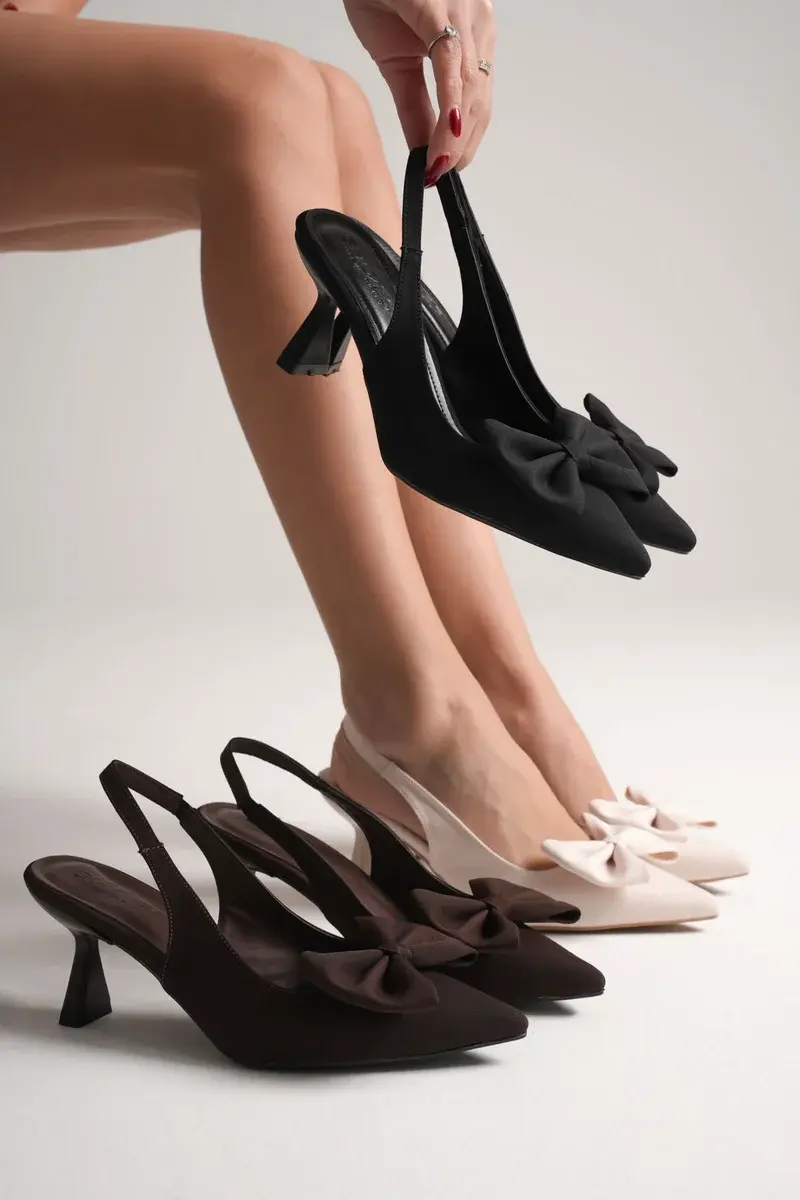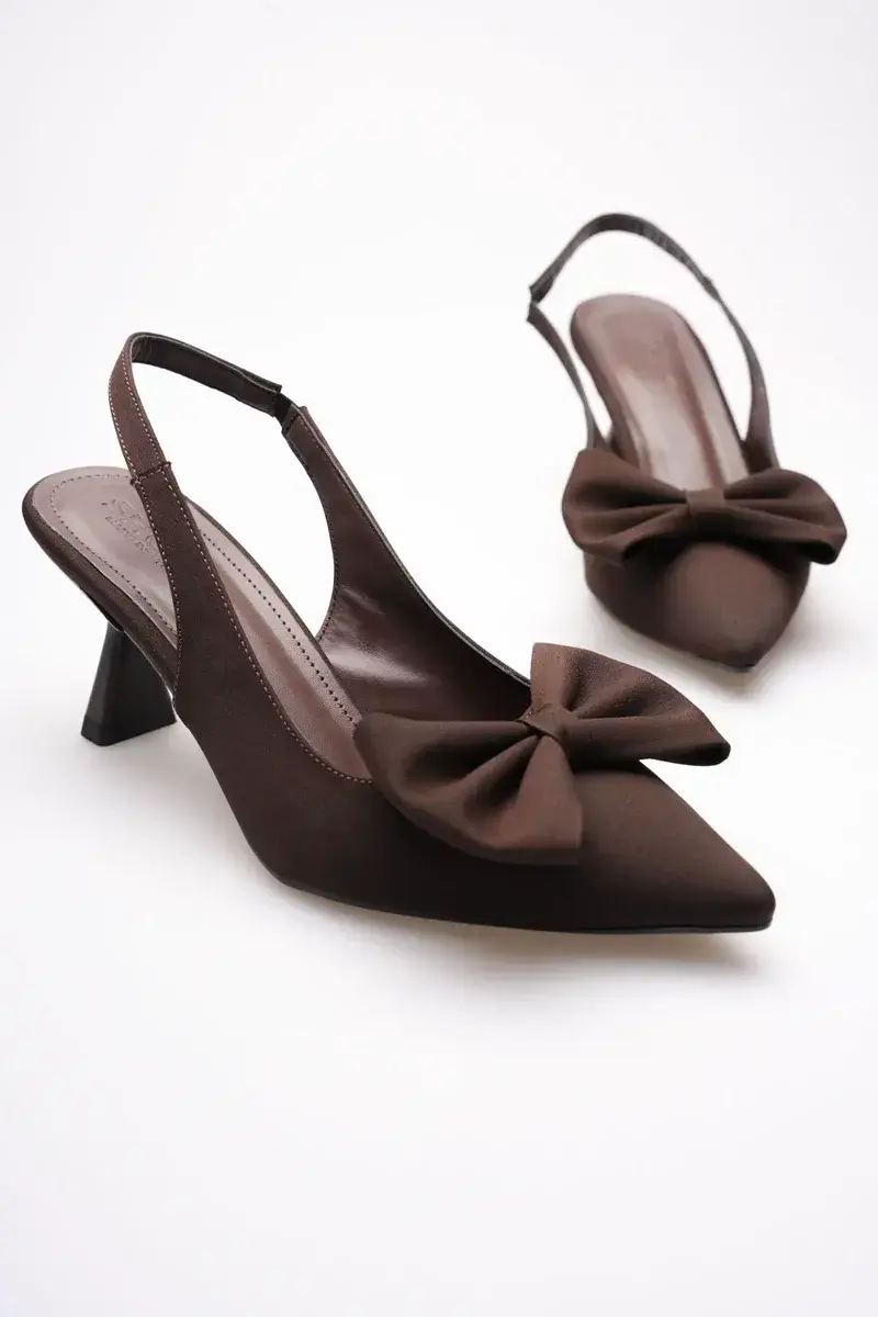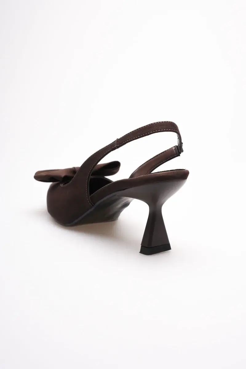 Acı Kahve Fiyonklu Kitten Topuklu Slingback Kadın Ayakkabı BUCCA08MS24C