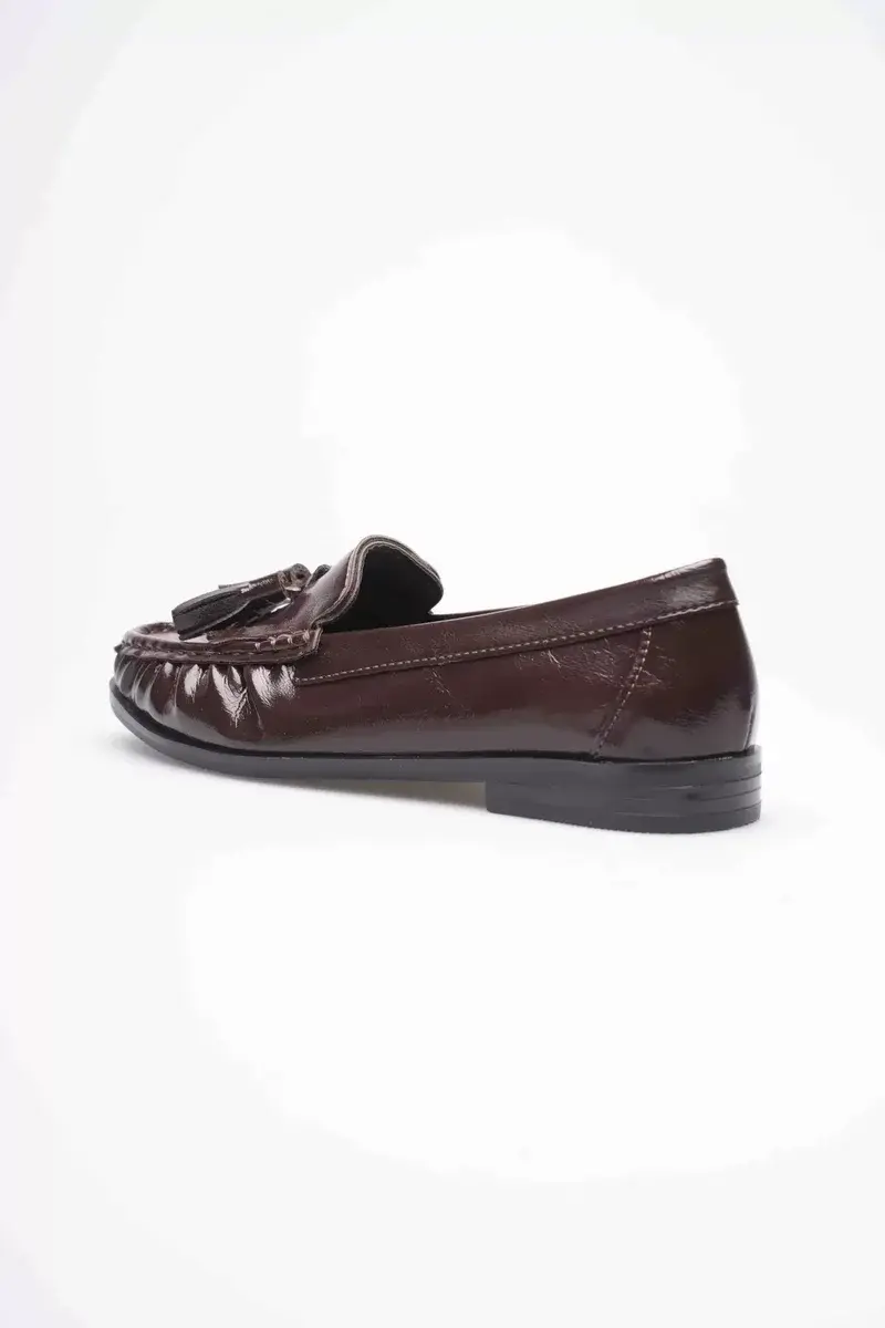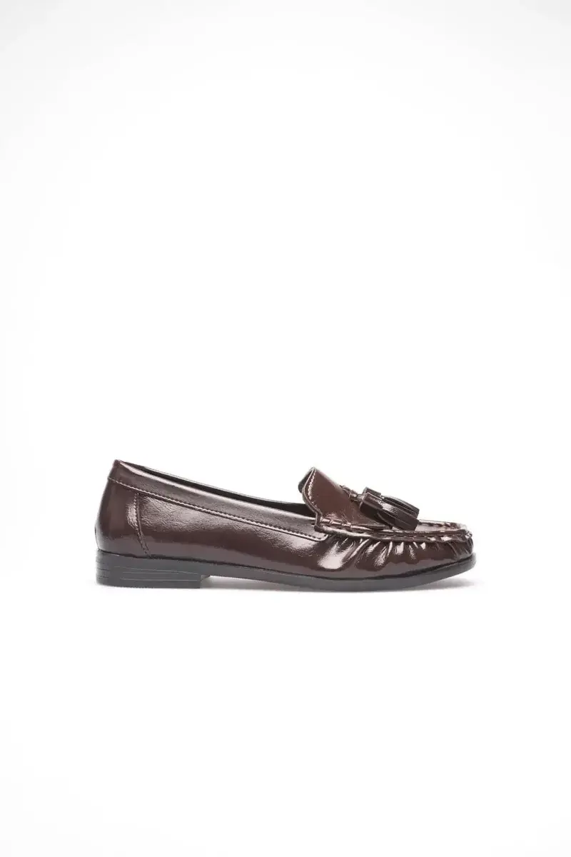 Kadın Kahverengi Rugan Püsküllü Loafer Ayakkabı BUCCA88MS01B