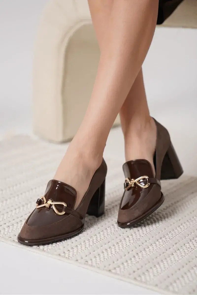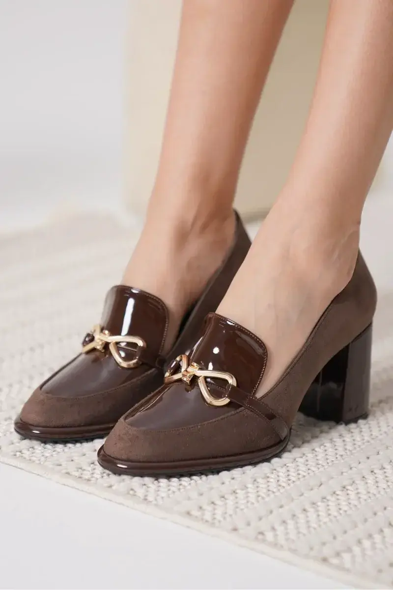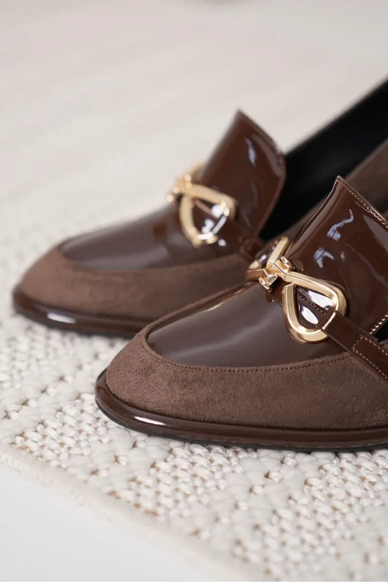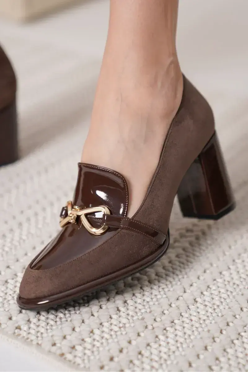 Acı Kahve Rugan Süet Detaylı Kadın Topuklu Ayakkabı BUCCA18MS10E