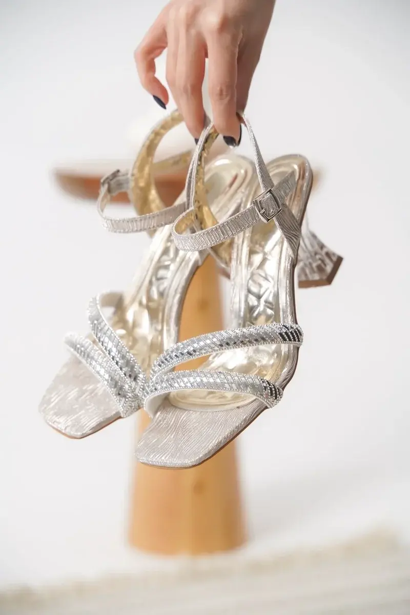 Altın Taşlı Kadın Topuklu Sandalet BUCCA25MY05D