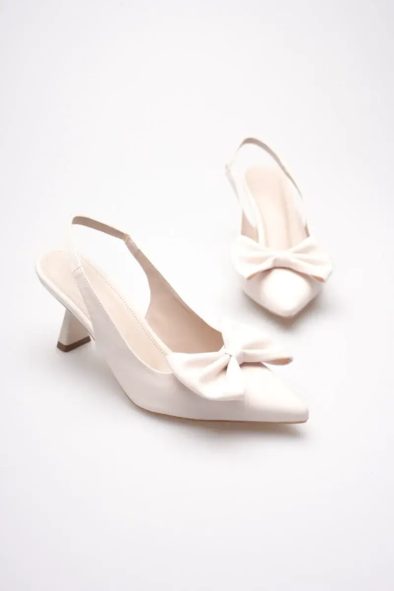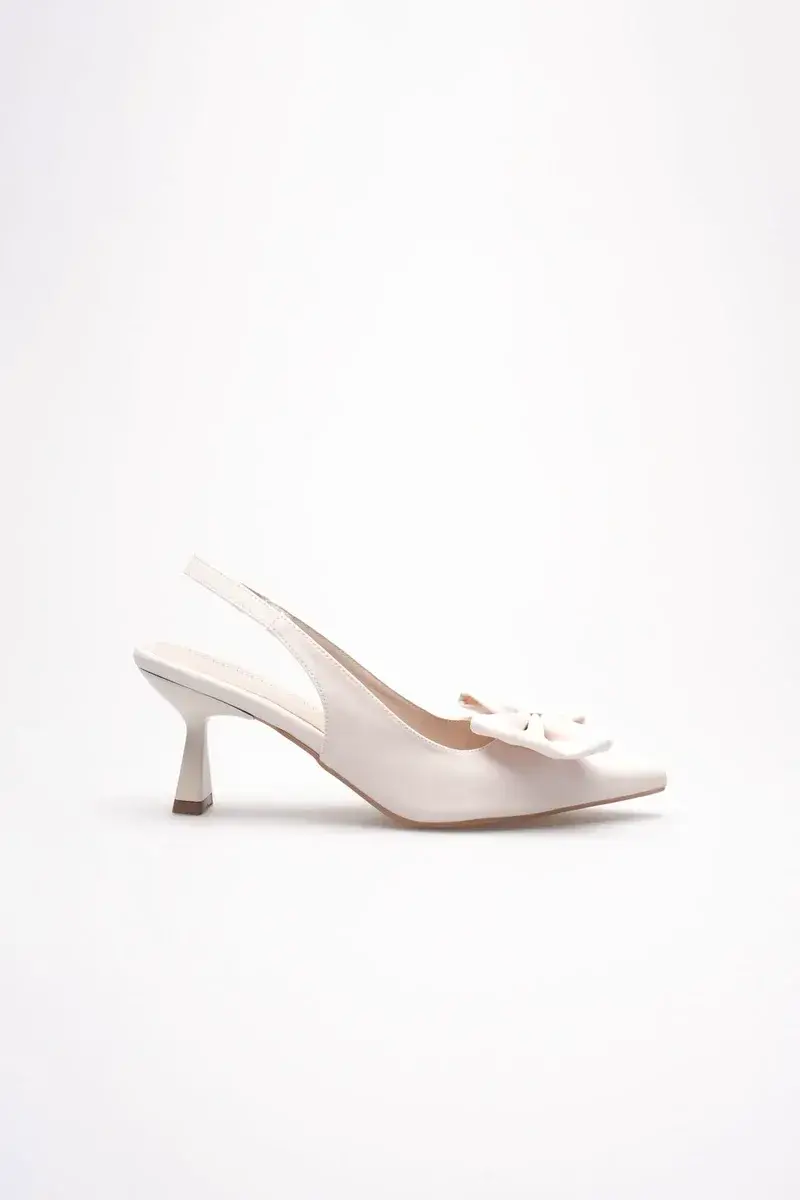 Bej Fiyonklu Kitten Topuklu Slingback Kadın Ayakkabı BUCCA08MS24B