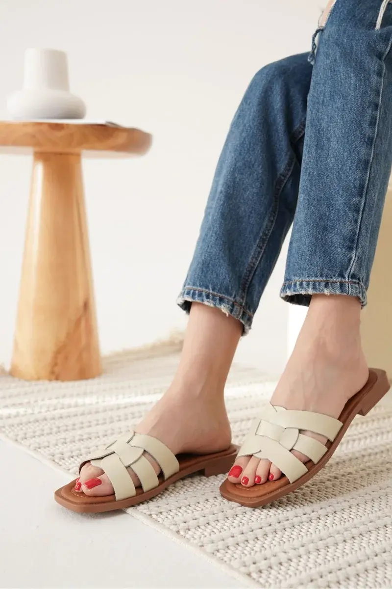 Bej Hakiki Deri Terlik BUCCA31MY66C