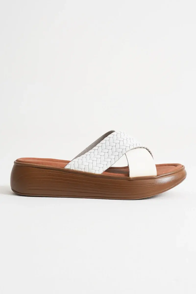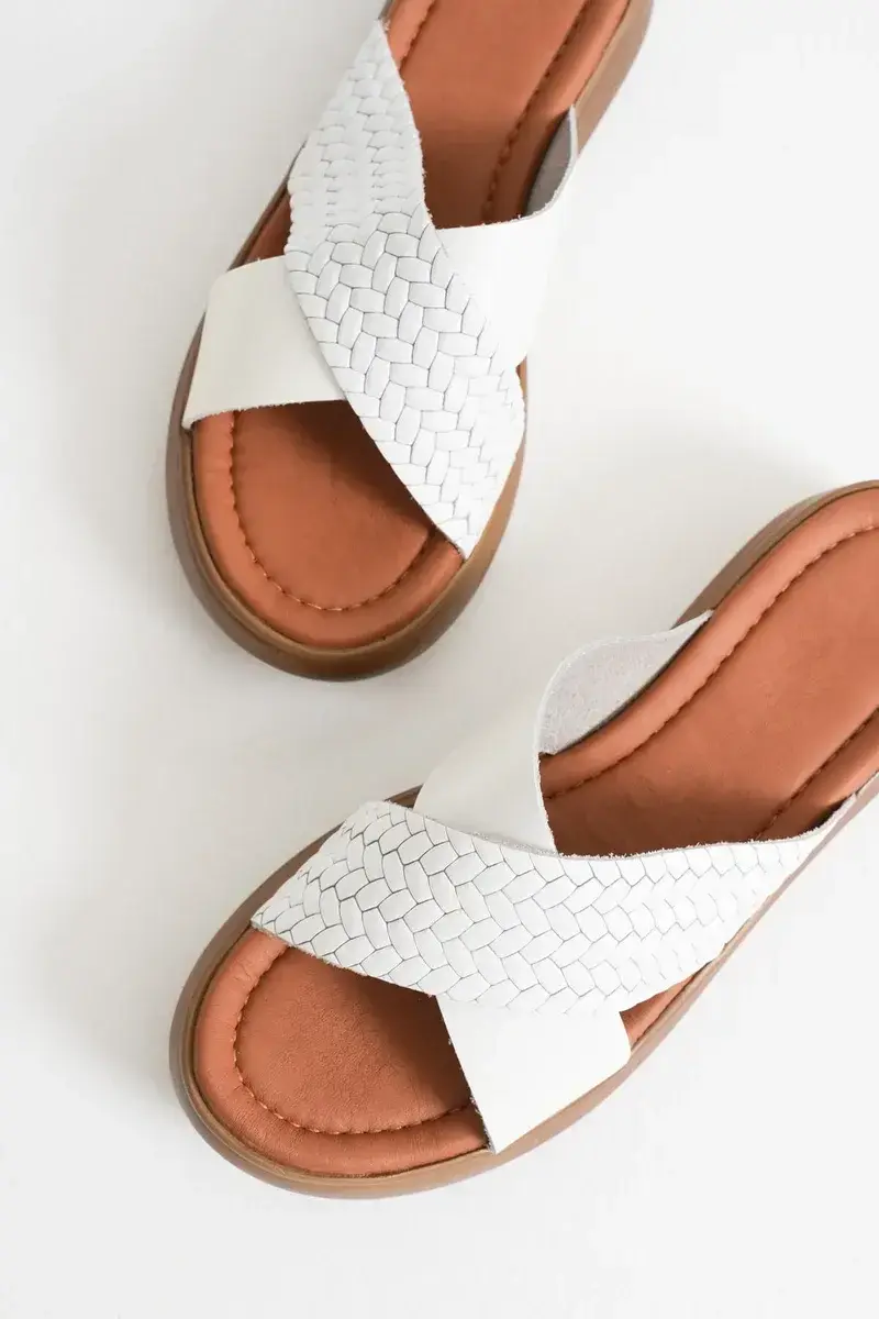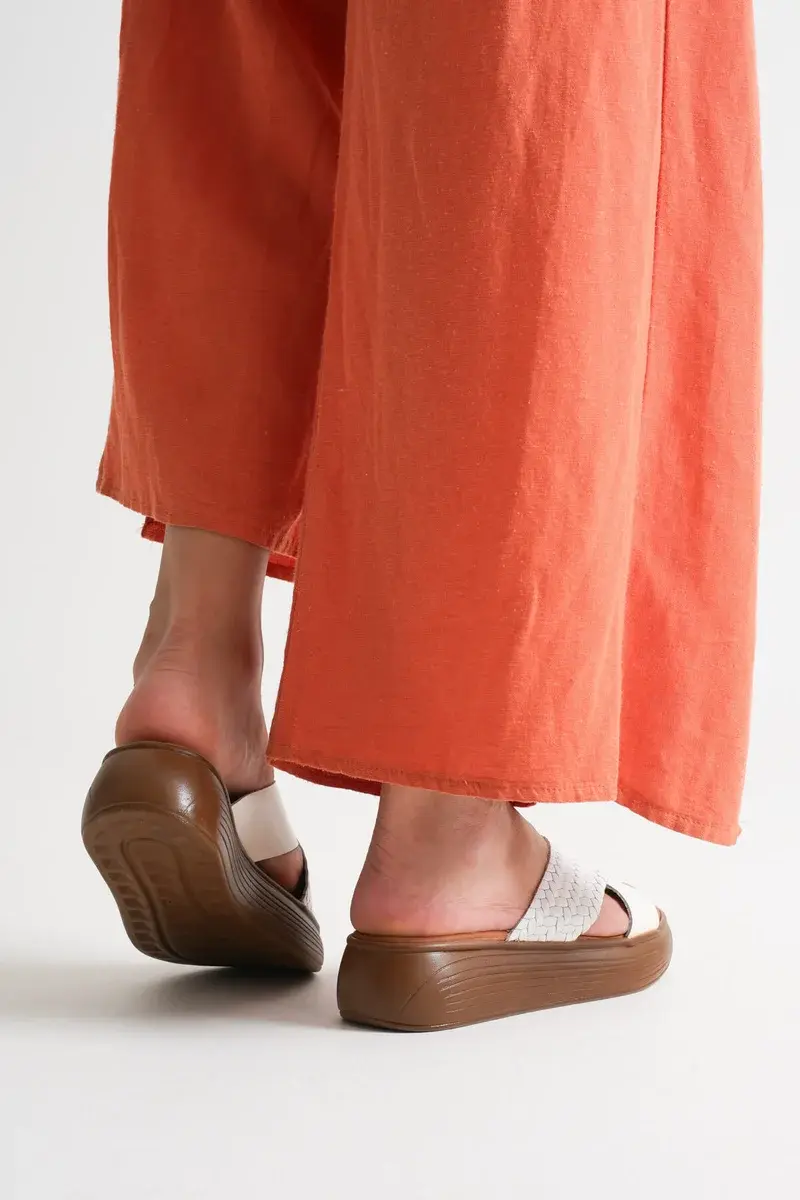 Beyaz Hakiki Deri Terlik BUCCA31MY53M