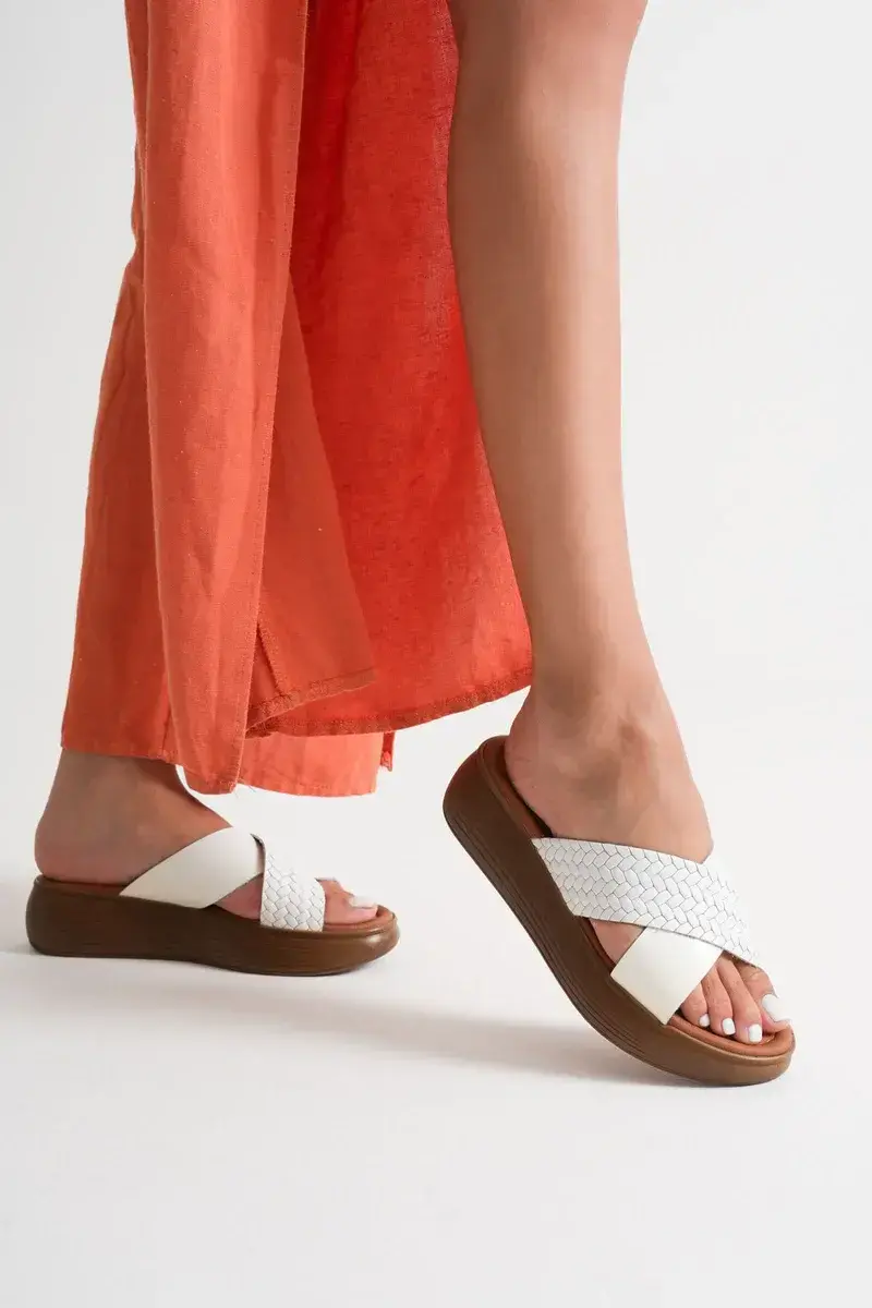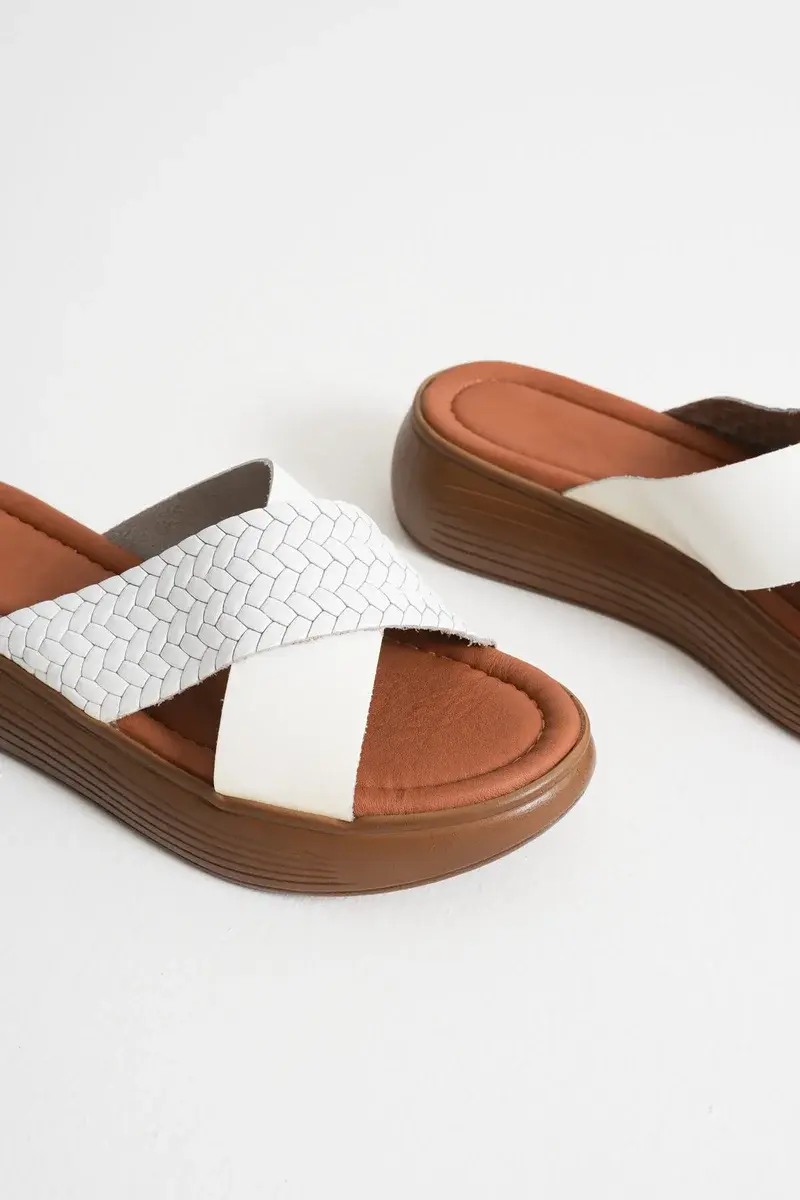 Beyaz Hakiki Deri Terlik BUCCA31MY53M t_TR31MY53M