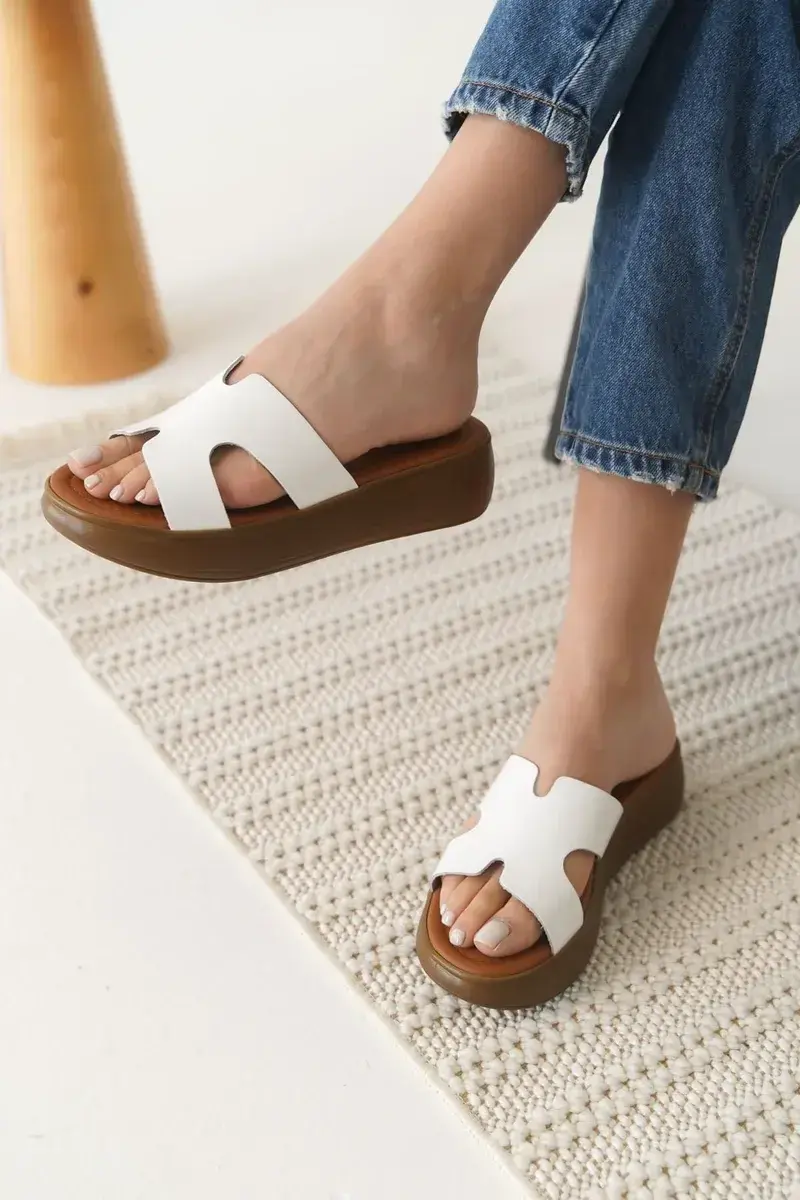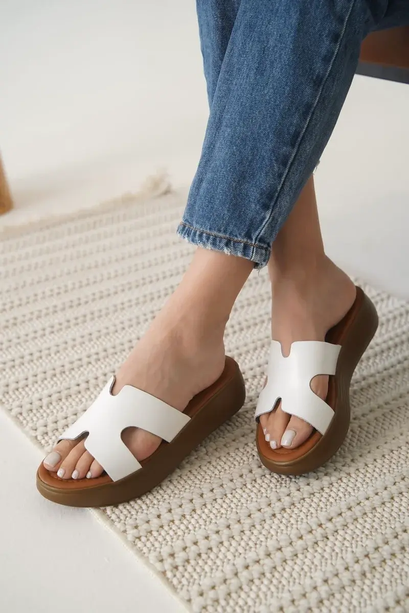 Beyaz Hakiki Deri Terlik BUCCA31MY54B