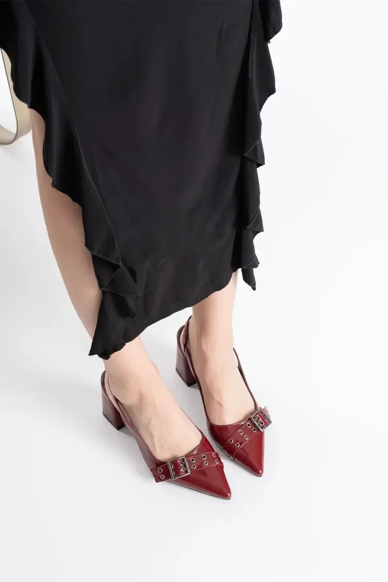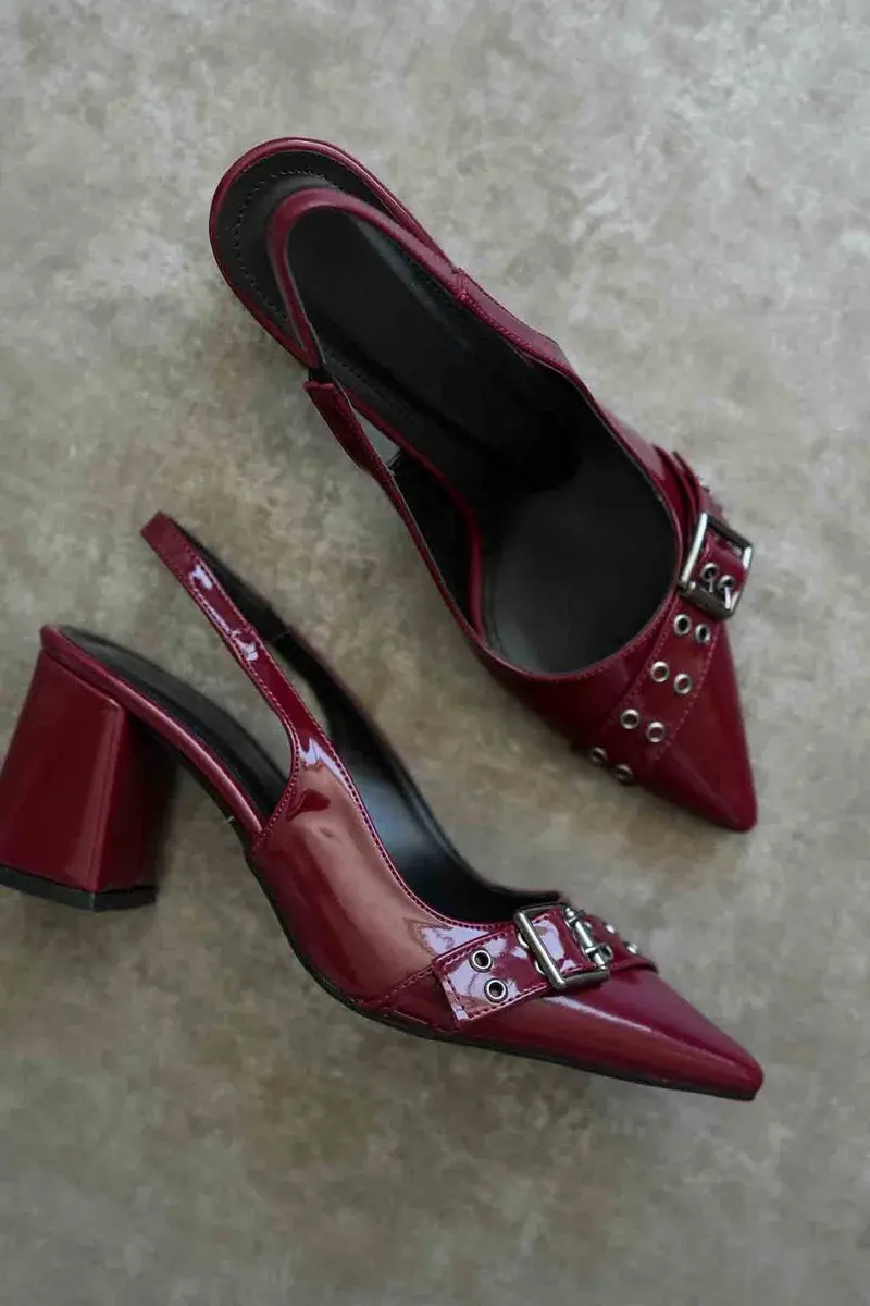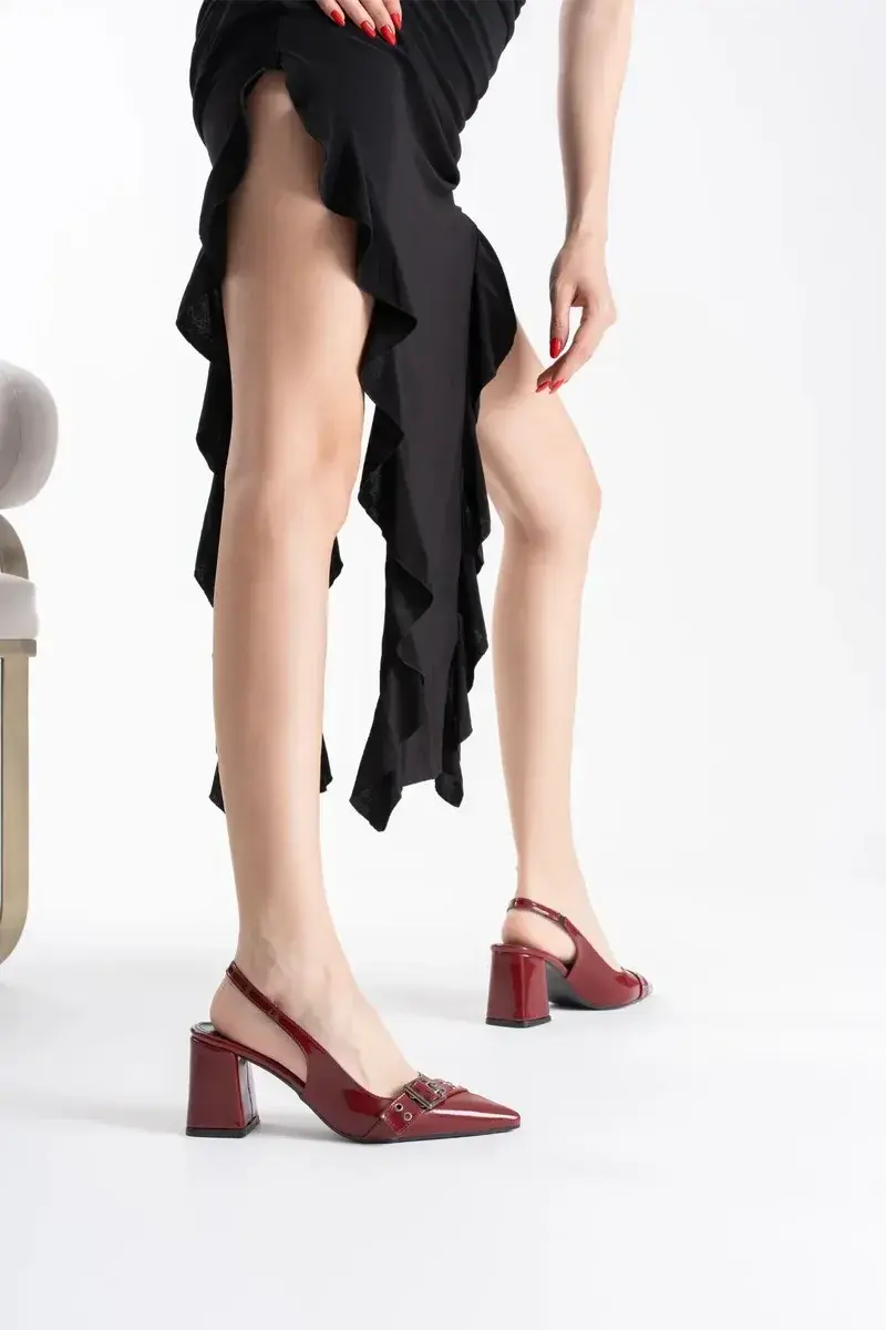 Bordo Rugan Kadın Topuklu Ayakkabı BUCCA08MS07C