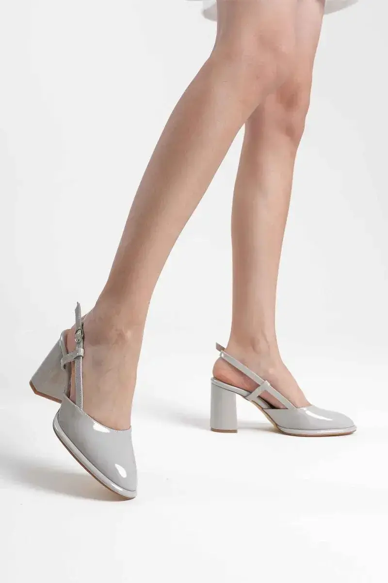 Gri Rugan Kadın Topuklu Ayakkabı BUCCA18MS18D