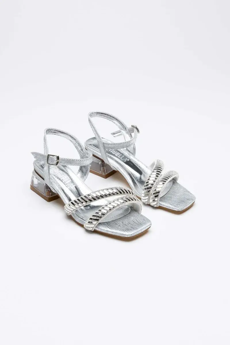 Gümüş Taşlı Kadın Topuklu Sandalet BUCCA25MY04B