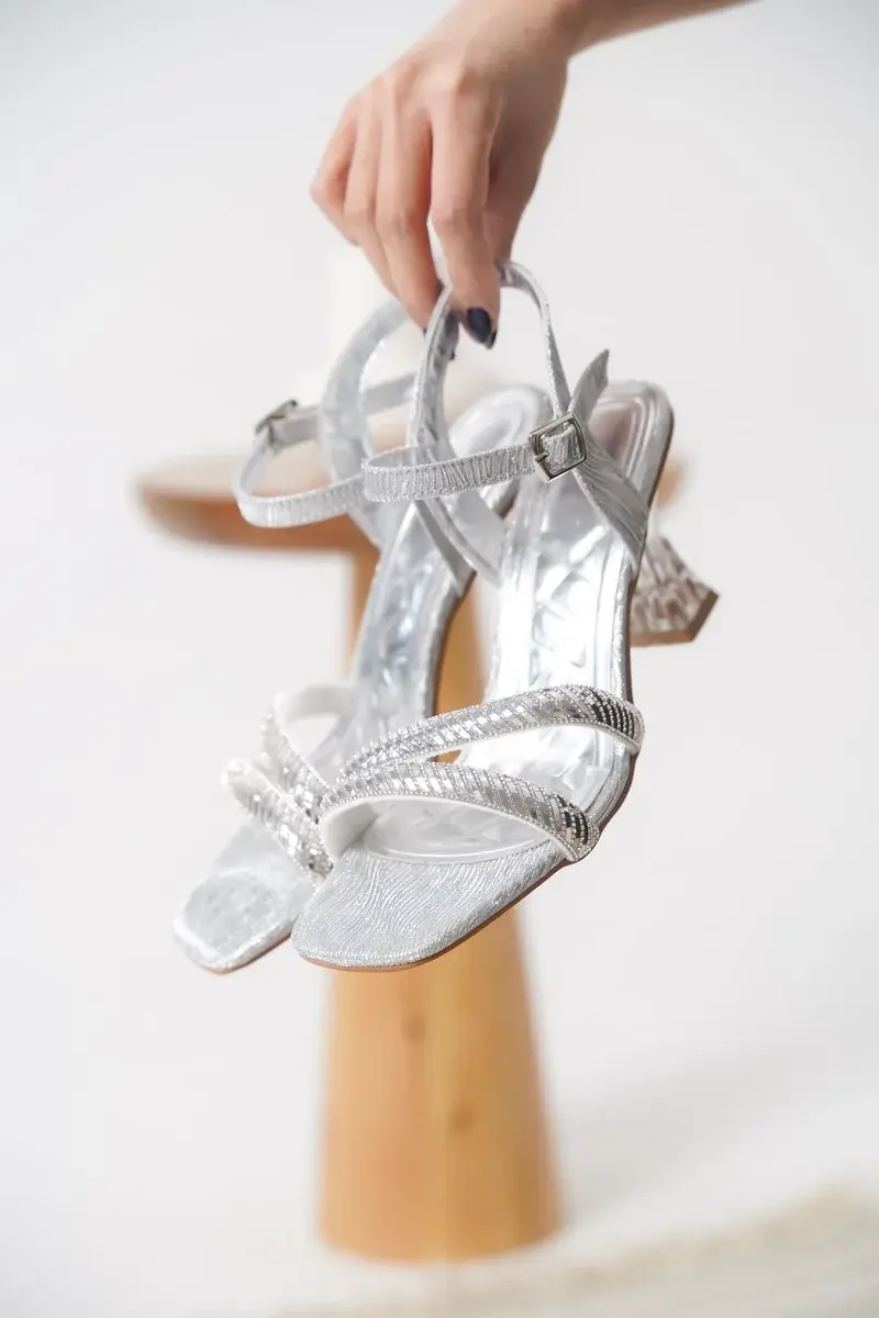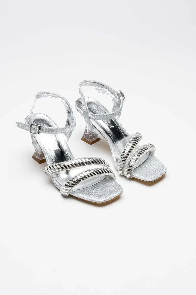 Gümüş Taşlı Kadın Topuklu Sandalet BUCCA25MY05E