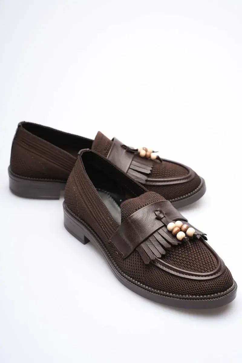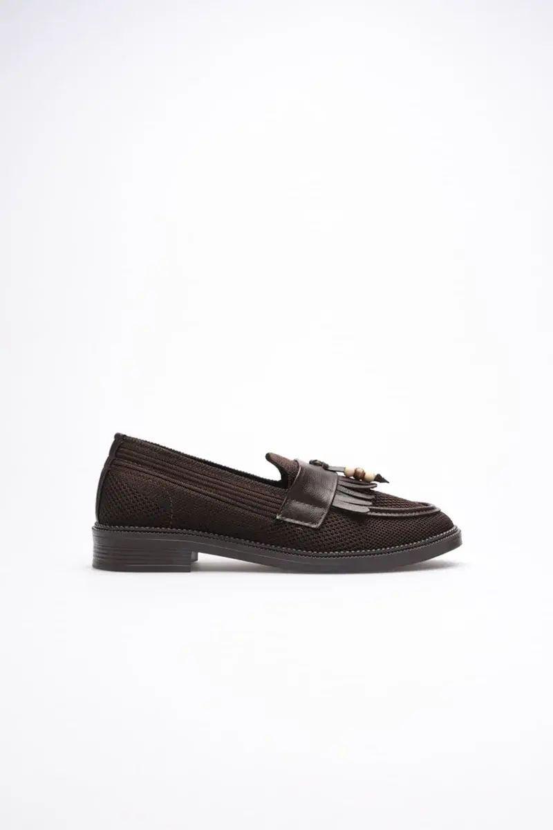BUCCA Kadın Kahverengi Dokulu Püskül Detaylı Günlük Loafer Ayakkabı BUCCA30MS01C