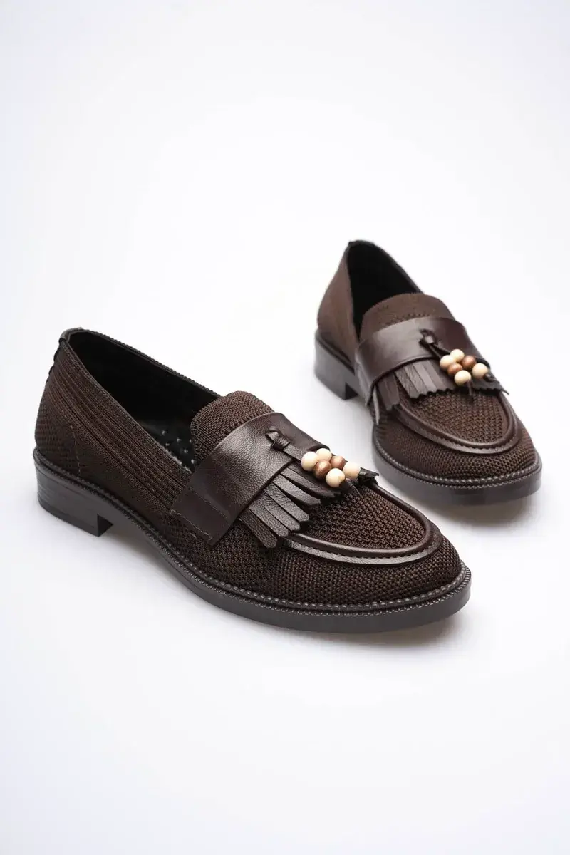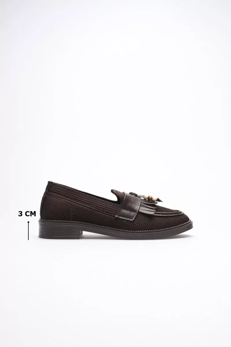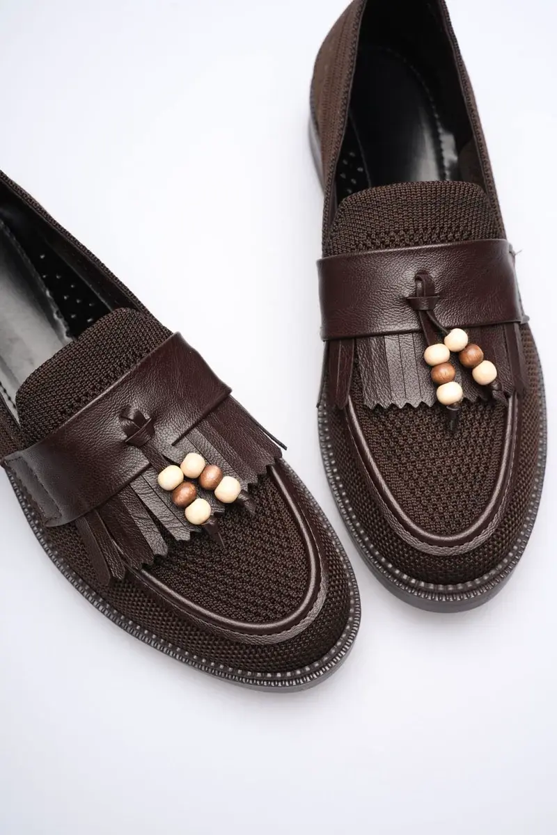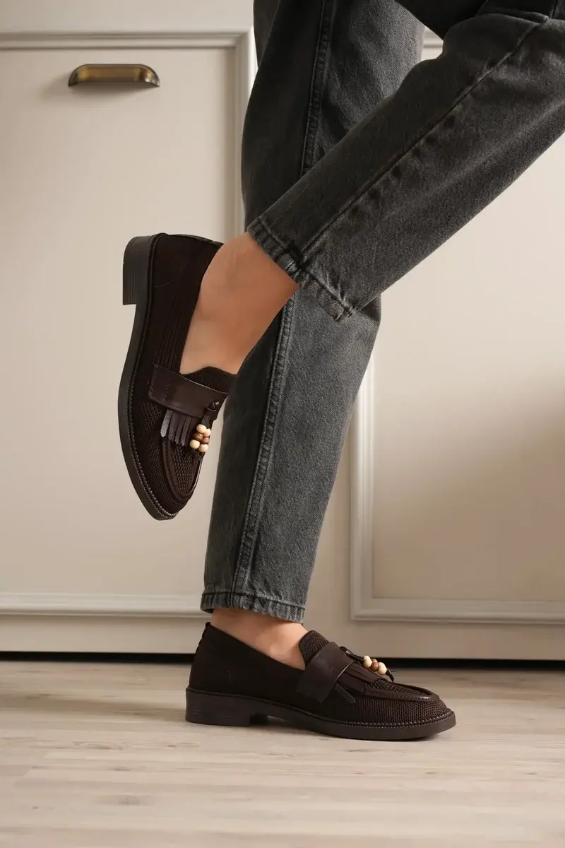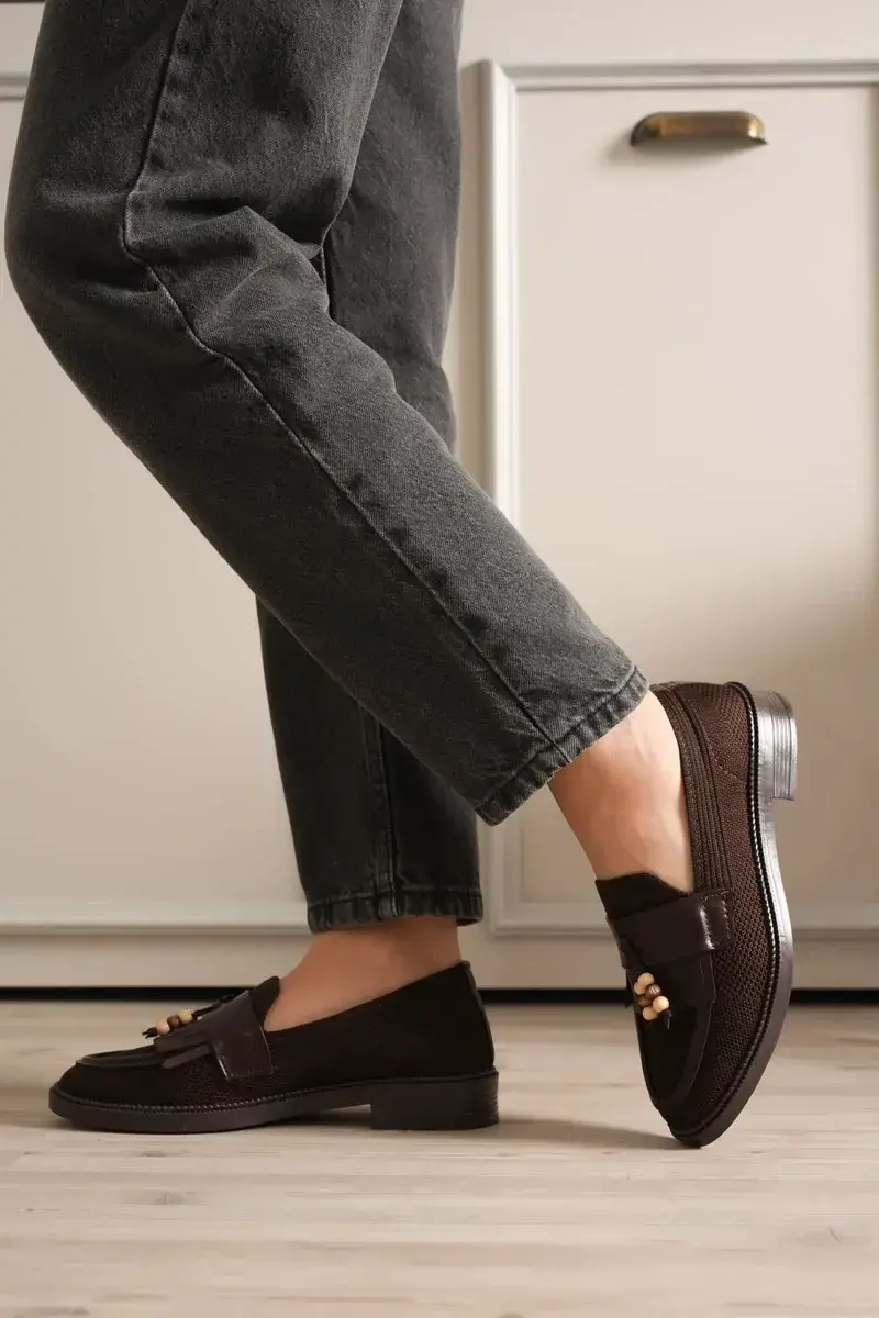 ✨ BUCCA Kadın Kahverengi Dokulu Püskül Detaylı Günlük Loafer Ayakkabı