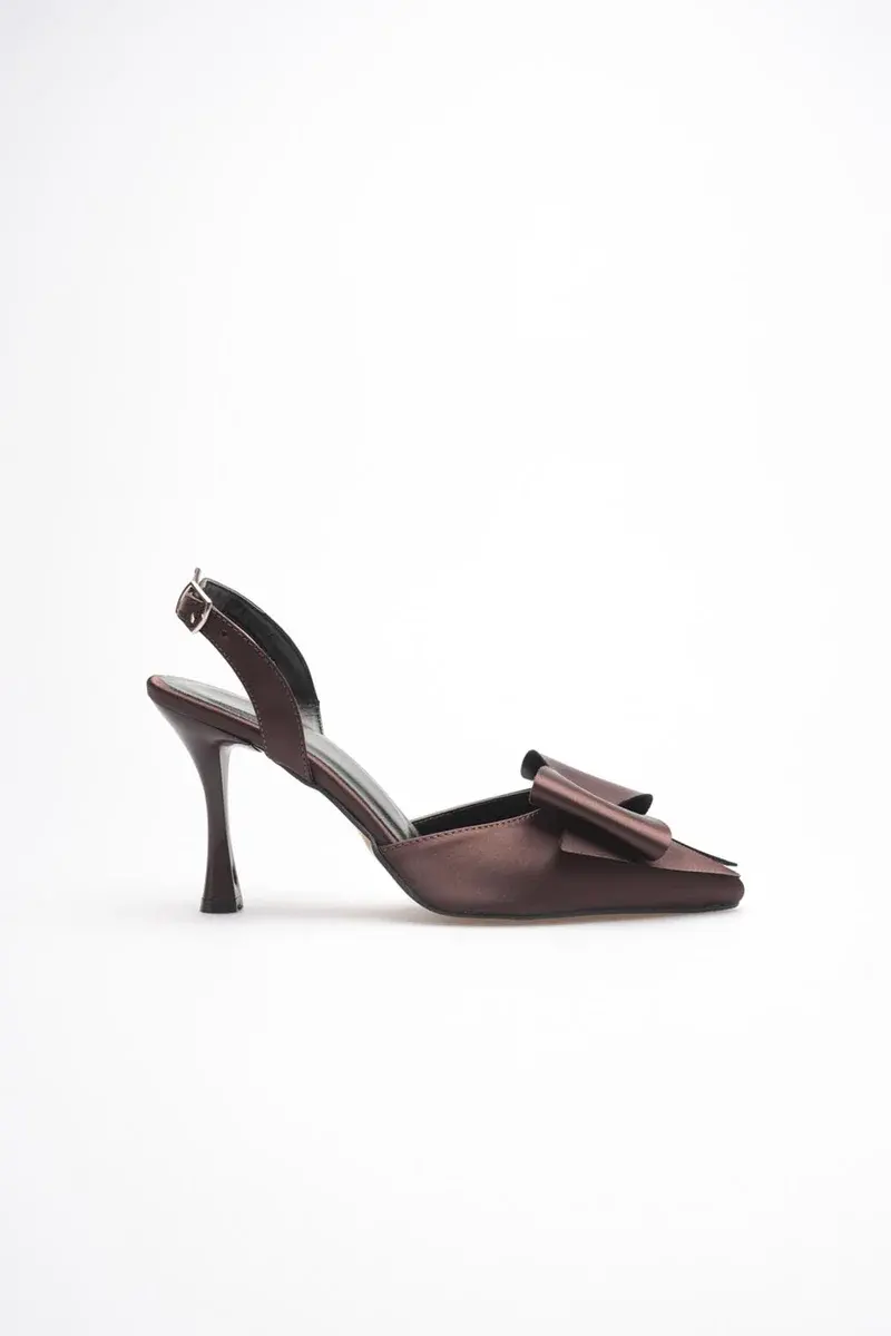 BUCCA Kadın Acı Kahve Fiyonk Detaylı Saten Slingback Topuklu Ayakkabı