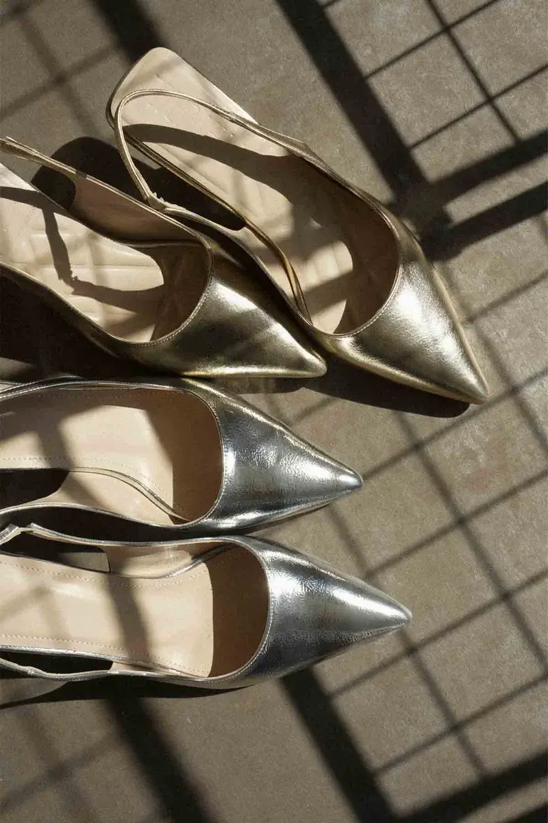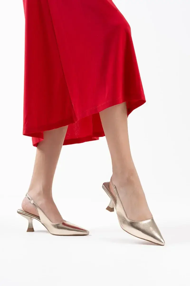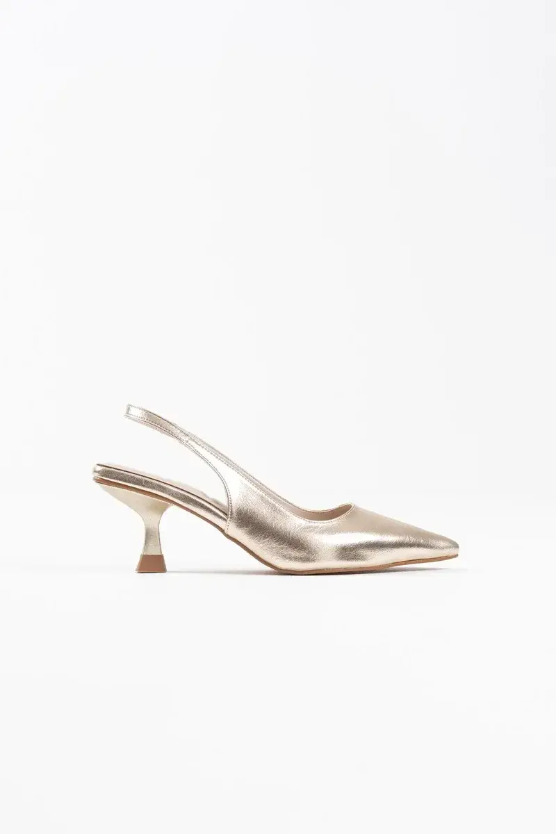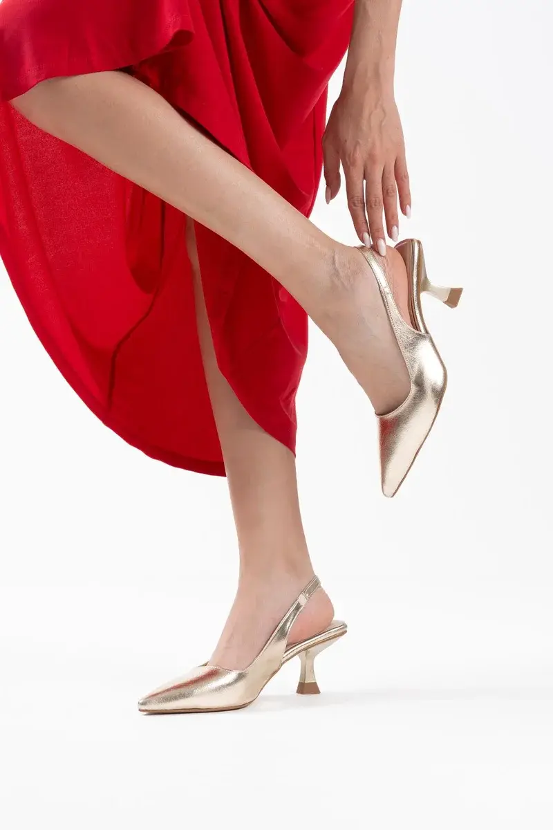 Kadın Altın Kırışık Rugan Topuklu Ayakkabı BUCCA08MS08E