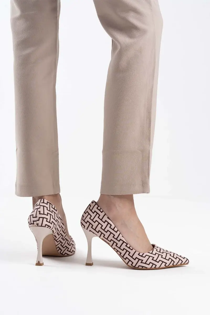 Kadın Bej Desenli Stiletto BUCCA08MS12B