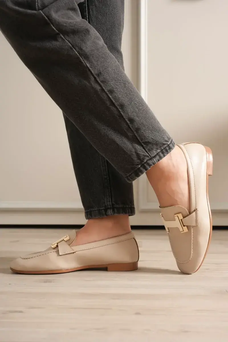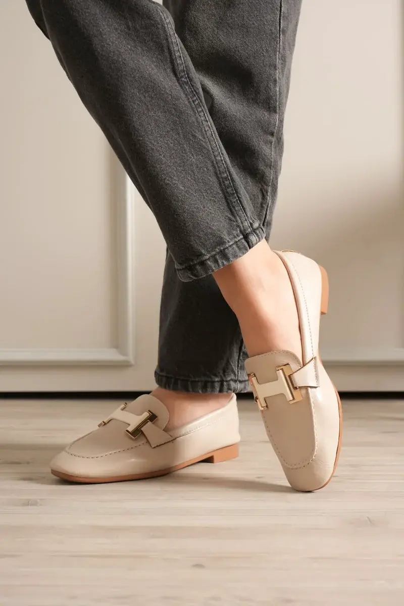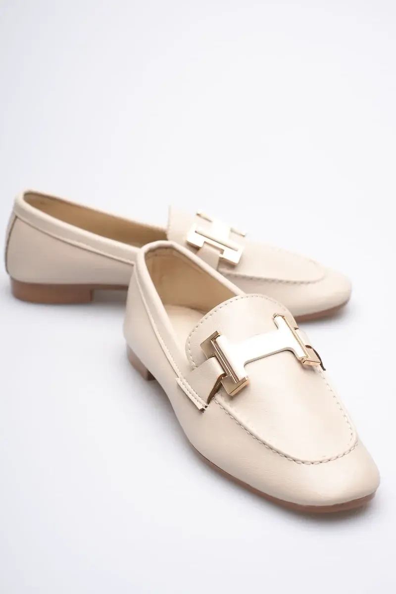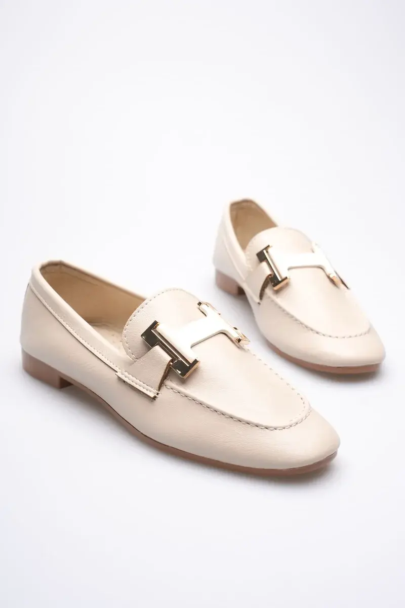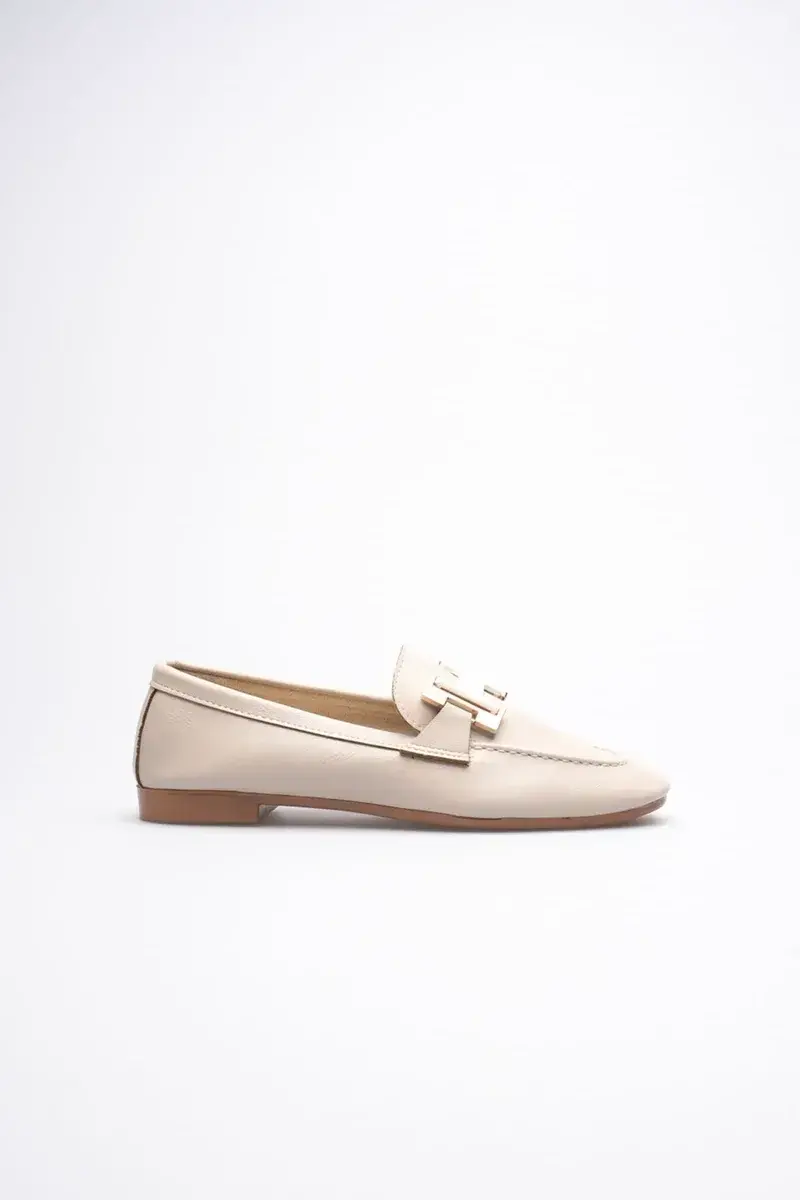 BUCCA Kadın Krem Metal Tokalı Loafer Ayakkabı
