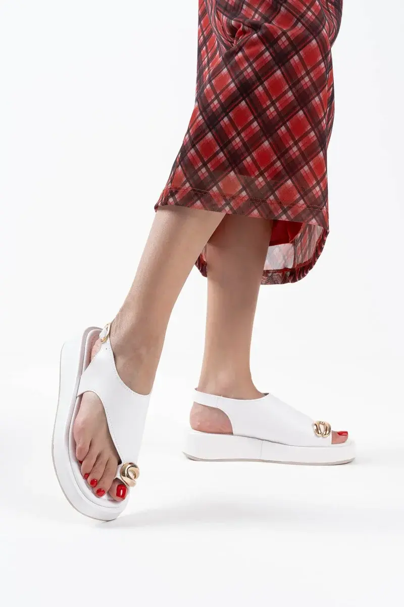 Kadın Beyaz Cilt Toka Detaylı Sandalet BUCCA17MY03B
