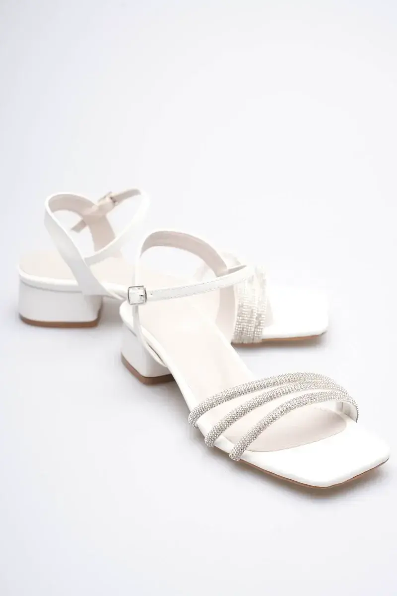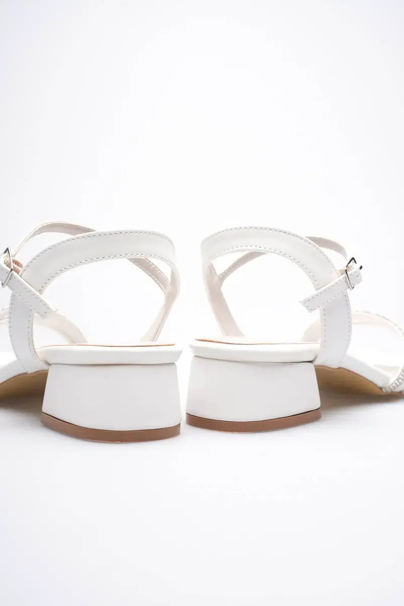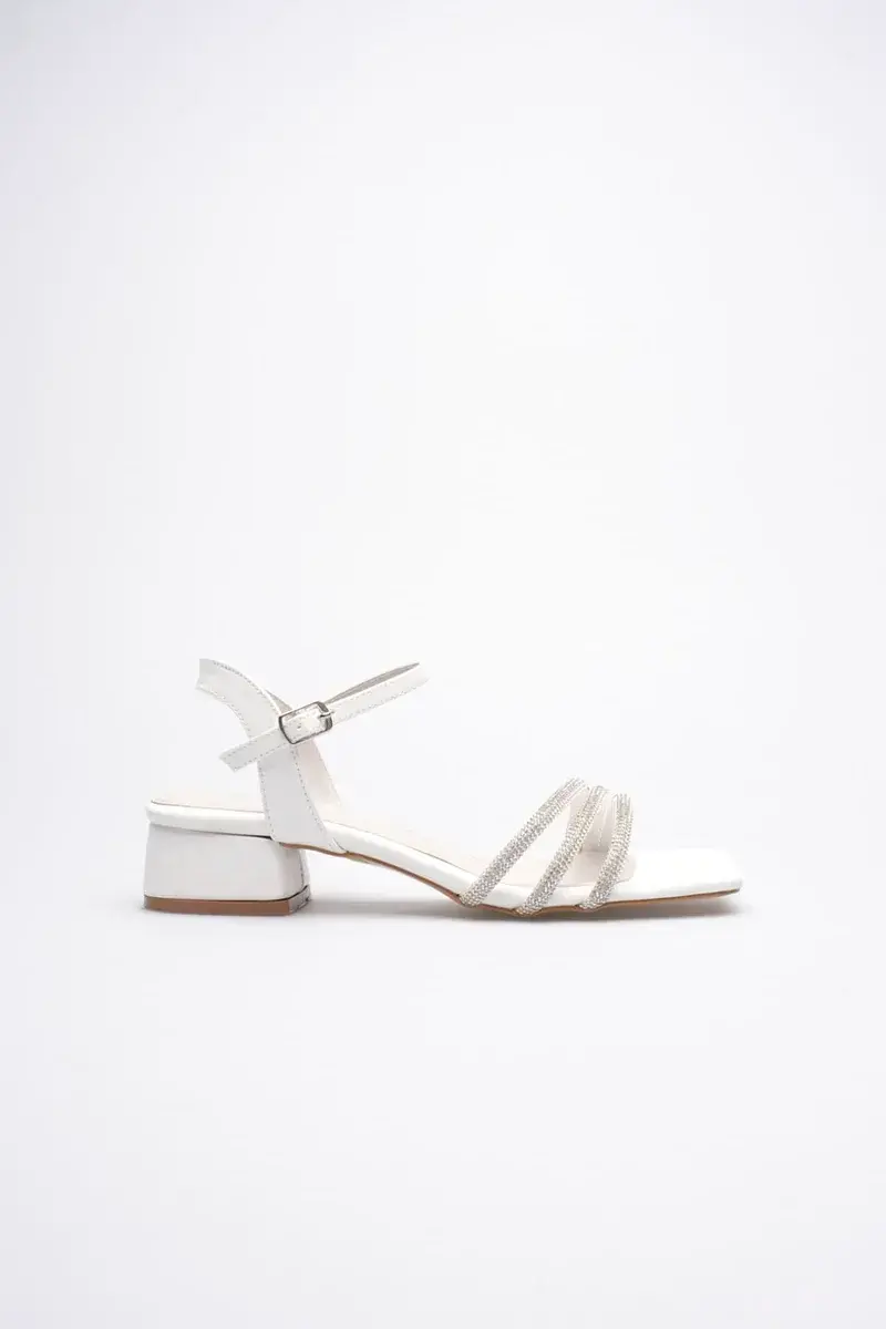 BUCCA Kadın Beyaz Taş Detaylı İnce Bantlı Topuklu Sandalet