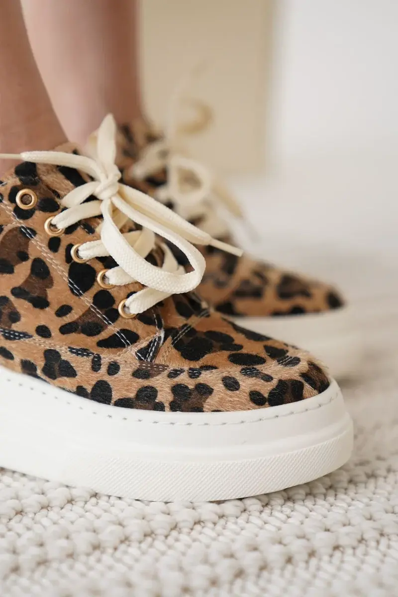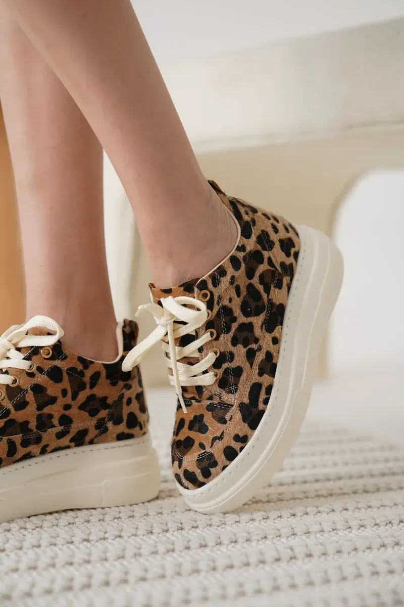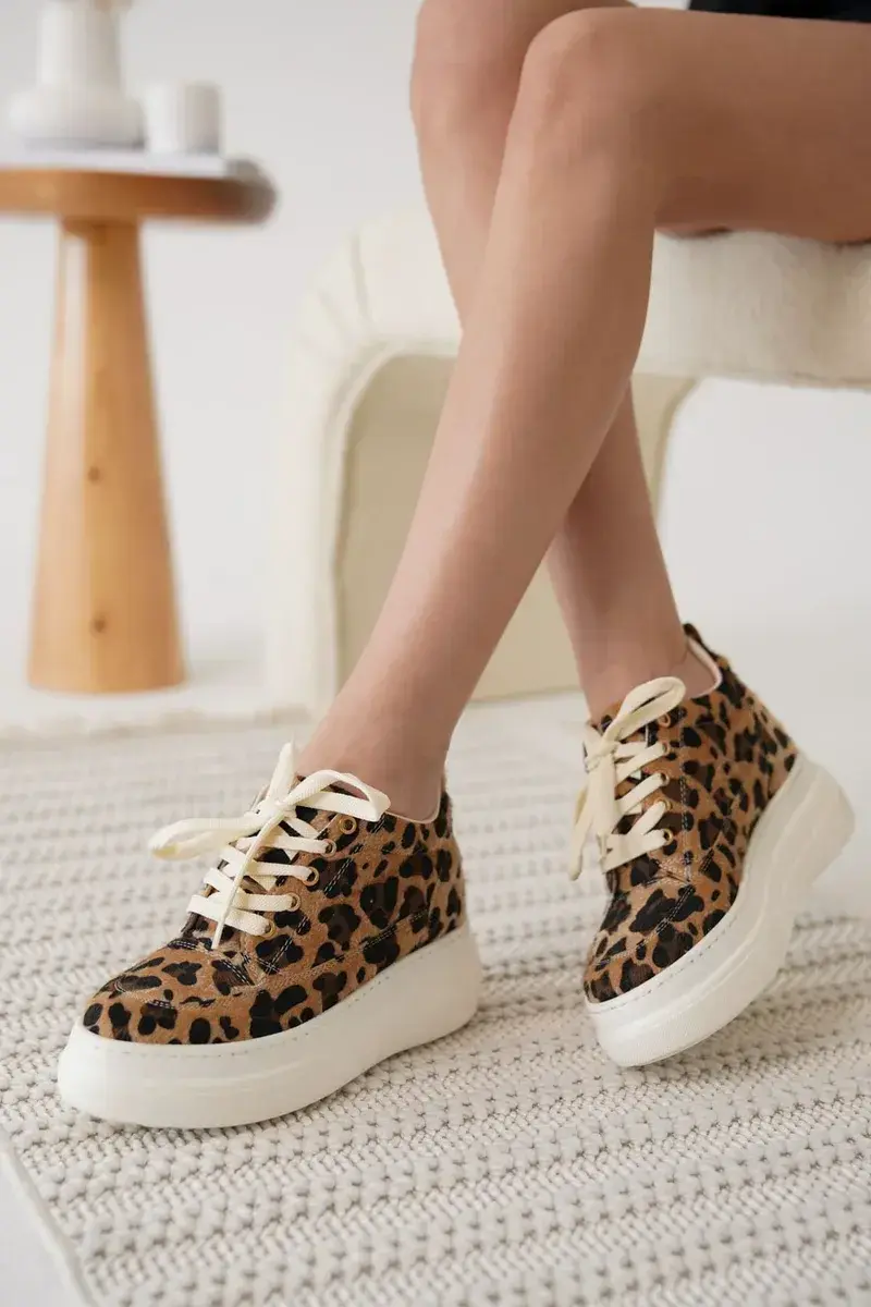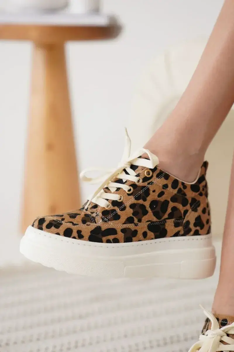 Kadın Gizli Topuk Beyaz Taban Leopar Spor Ayakkabı BUCCA10MS01H