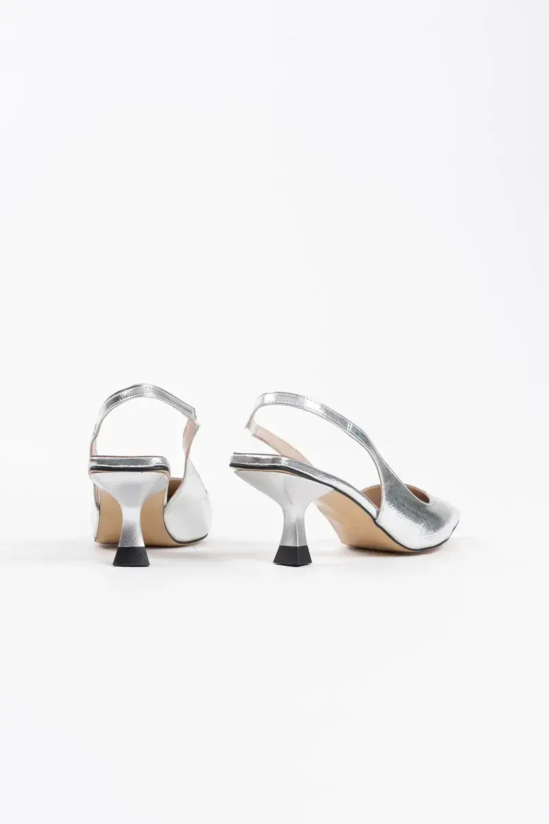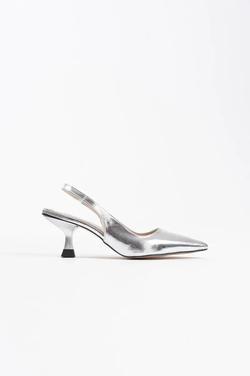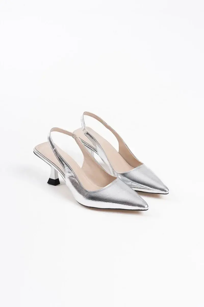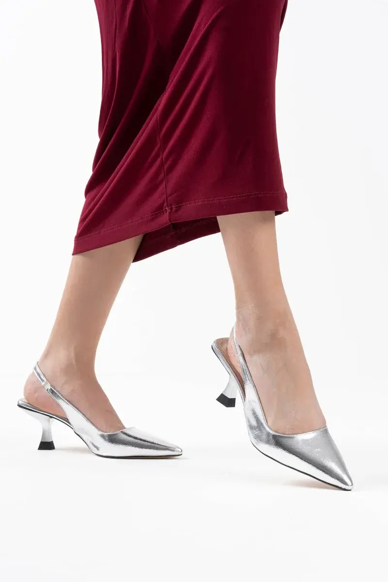 Kadın Gümüş Kırışık Rugan Topuklu Ayakkabı BUCCA08MS08D
