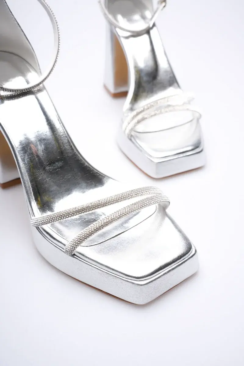Kadın Gümüş Topuklu Sandalet BUCCA12MY01E