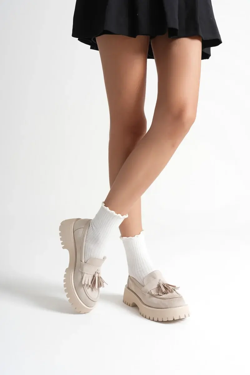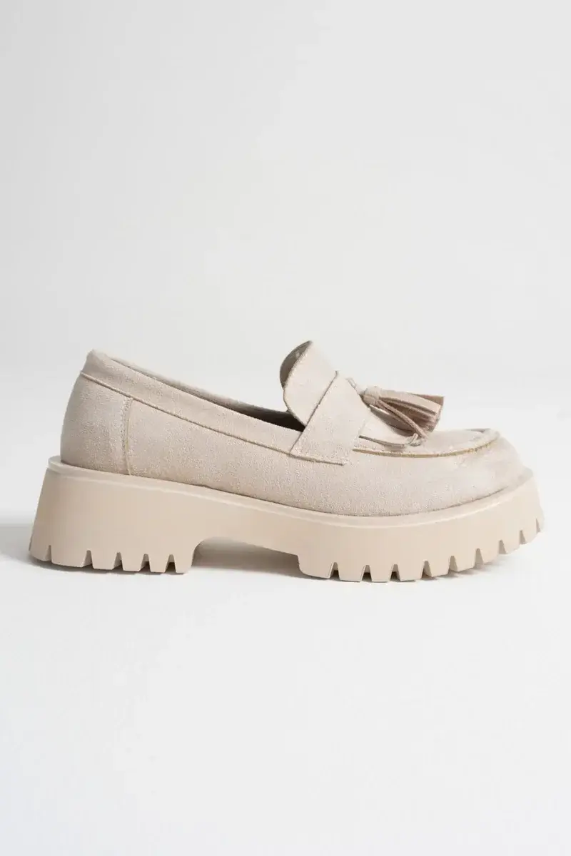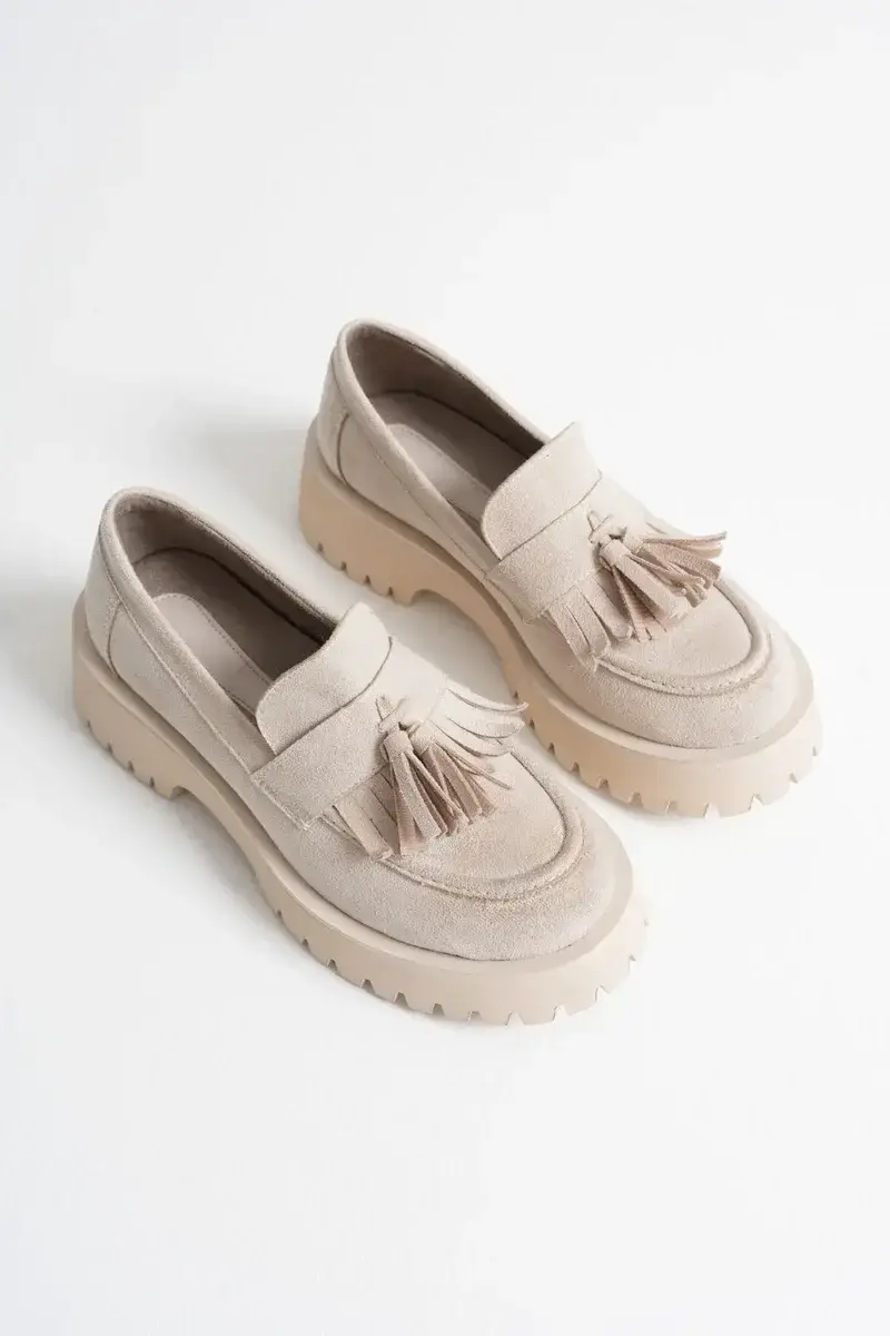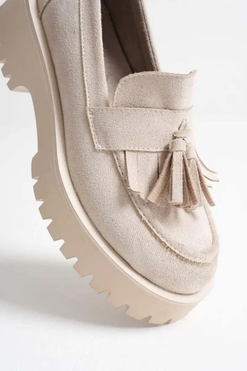 Kadın Günlük Bej Süet Loafer Ayakkabı BUCCA10MS03D