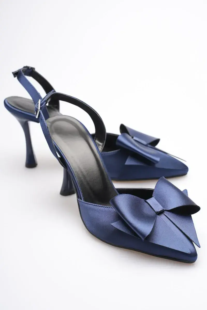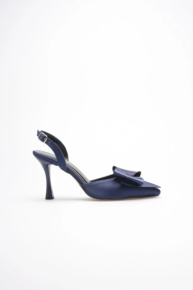 BUCCA Kadın Lacivert Fiyonk Detaylı Saten Slingback Topuklu Ayakkabı