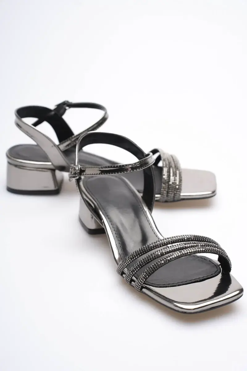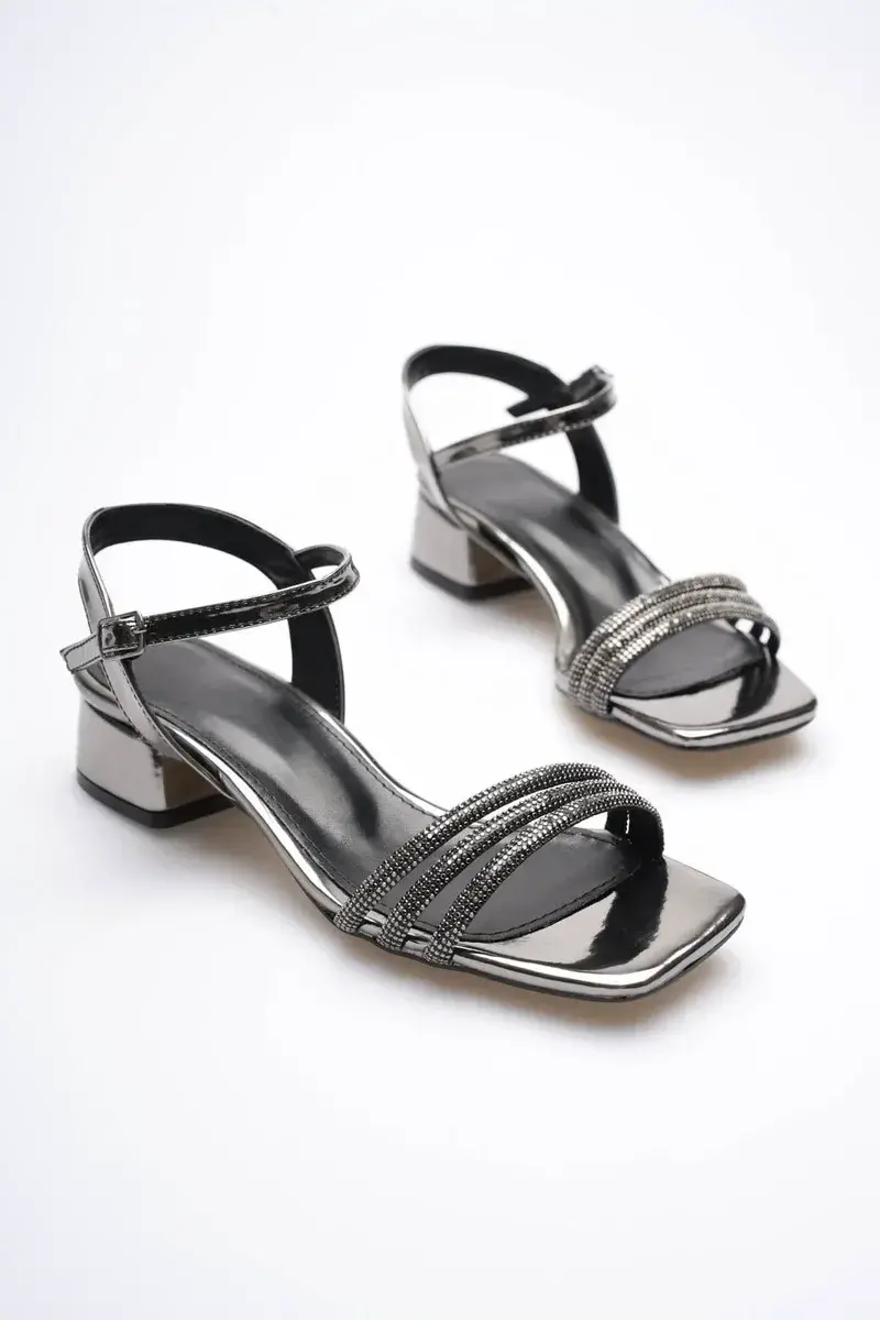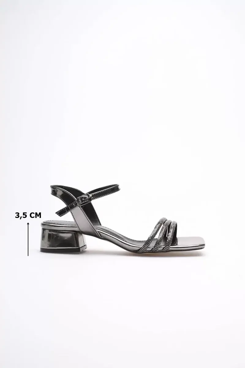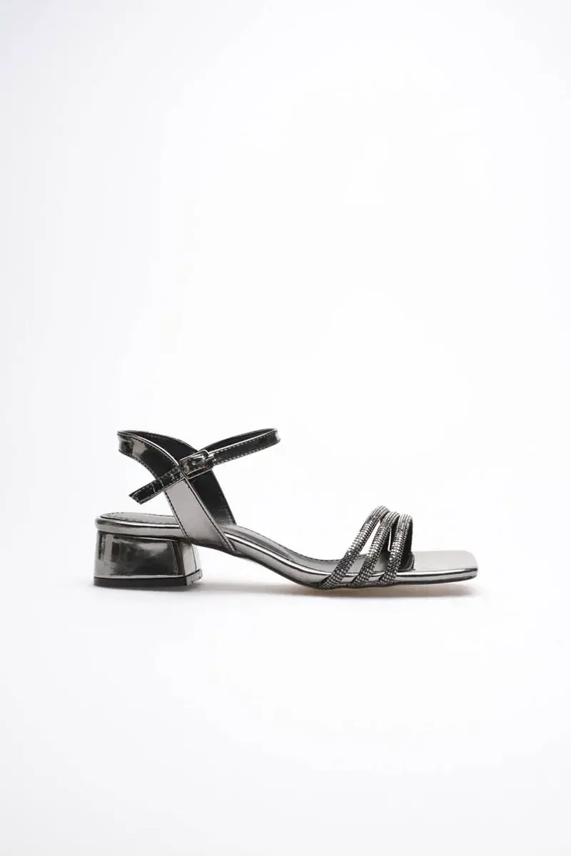 ✨ BUCCA Kadın Gümüş Taş Detaylı İnce Bantlı Topuklu Sandalet