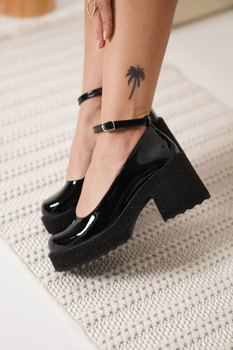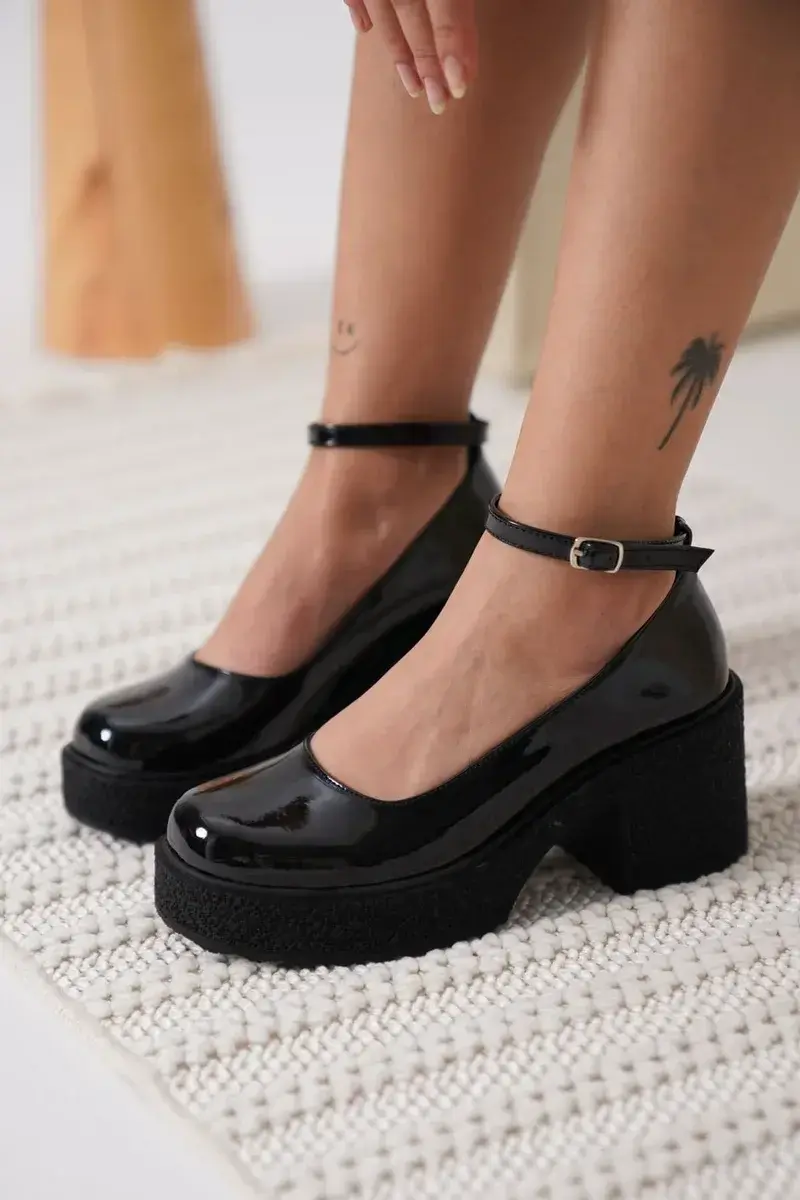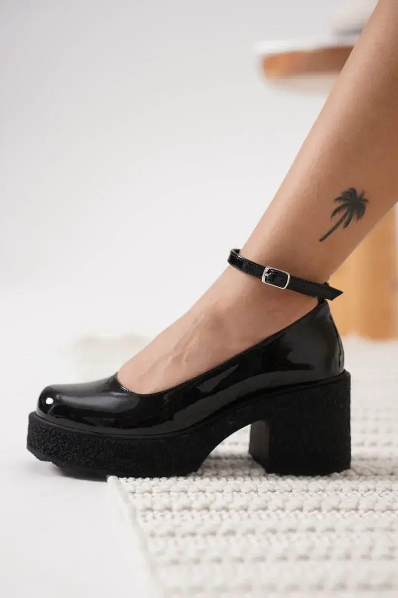 Kadın Siyah Rugan Bilekten Baretli Günlük Ayakkabı BUCCA06MS01A