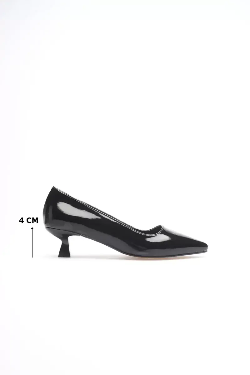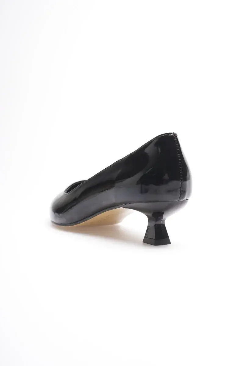 Kadın Siyah Rugan Kısa Topuklu Stiletto Ayakkabı BUCCA20MS03E