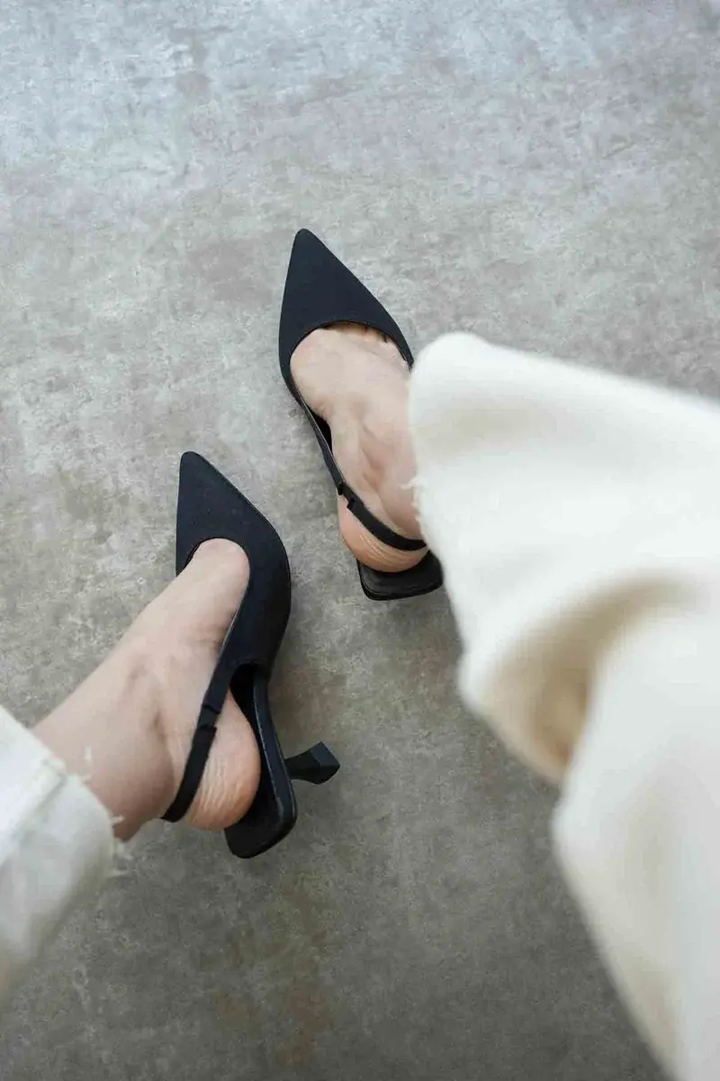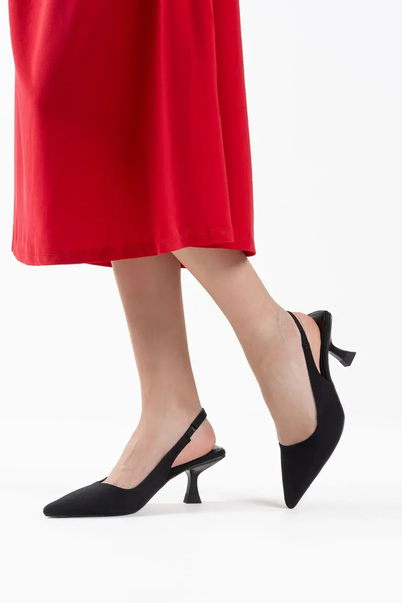 Kadın Siyah Saten Topuklu Ayakkabı BUCCA08MS08A