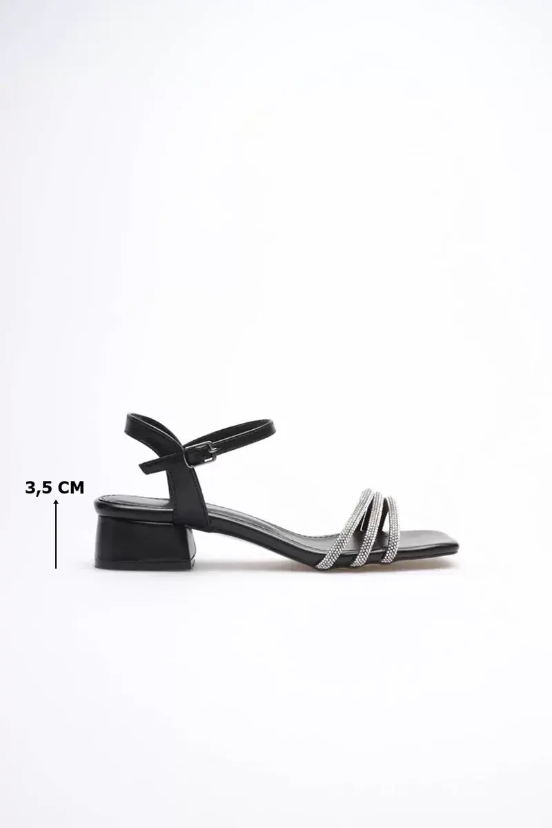 BUCCA Kadın Siyah Taş Detaylı İnce Bantlı Topuklu Sandalet