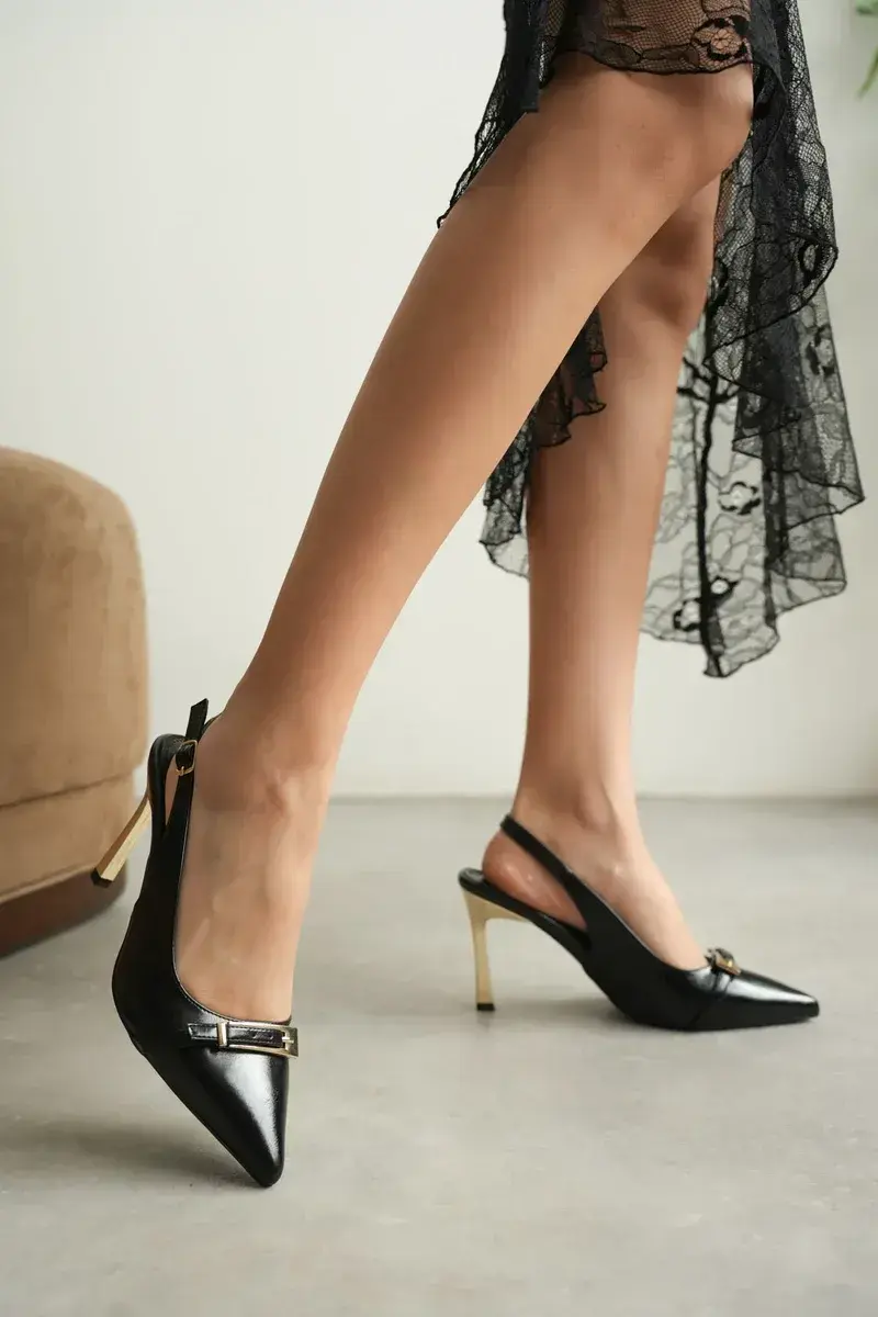 Kadın Siyah Tokalı Topuklu Ayakkabı BUCCA08MS34A