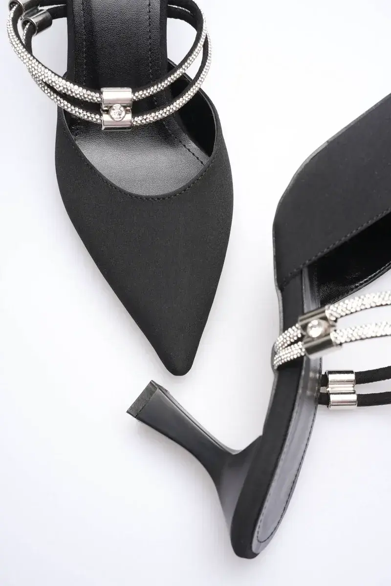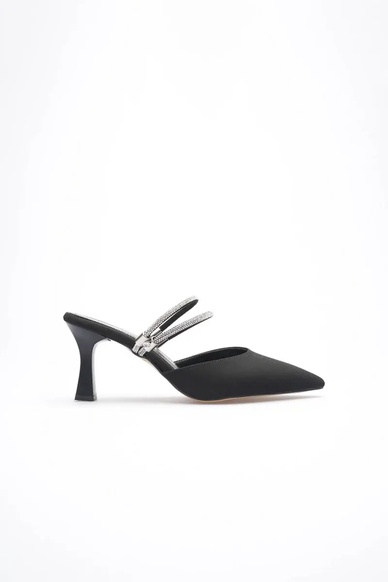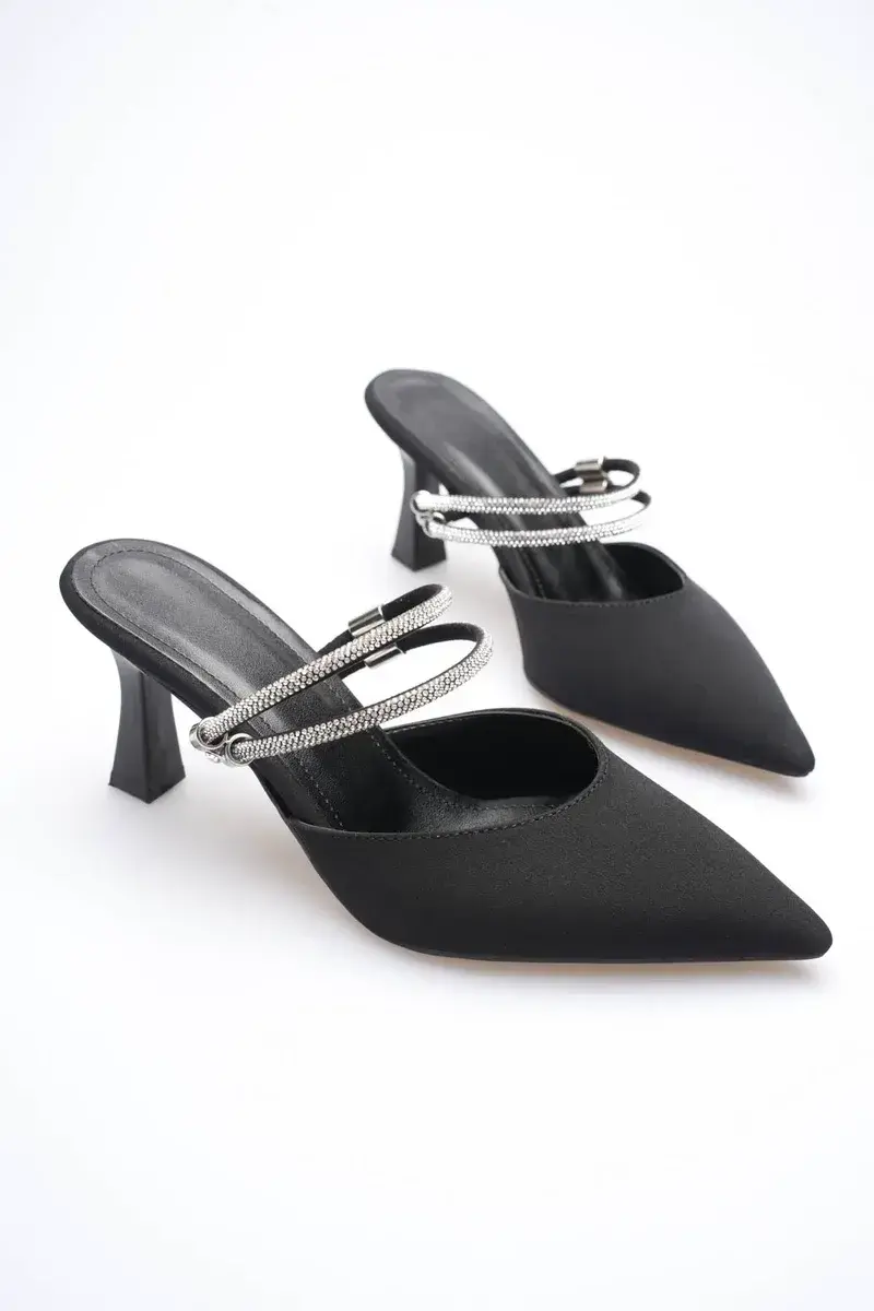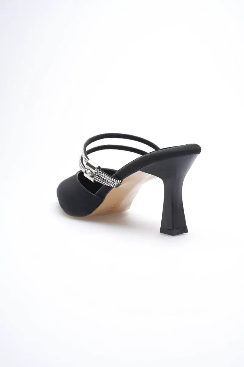 Kadın Taşlı Siyah Saten Topuklu Ayakkabı BUCCA12MS04A