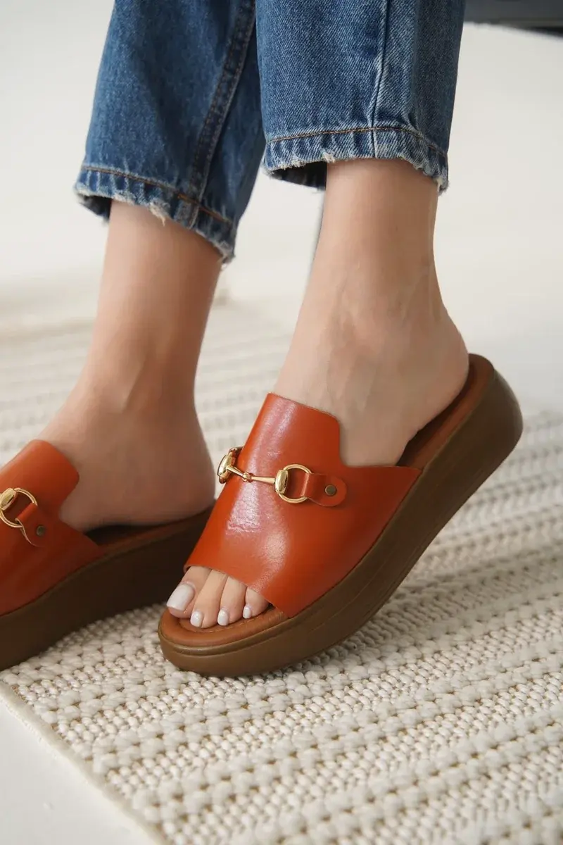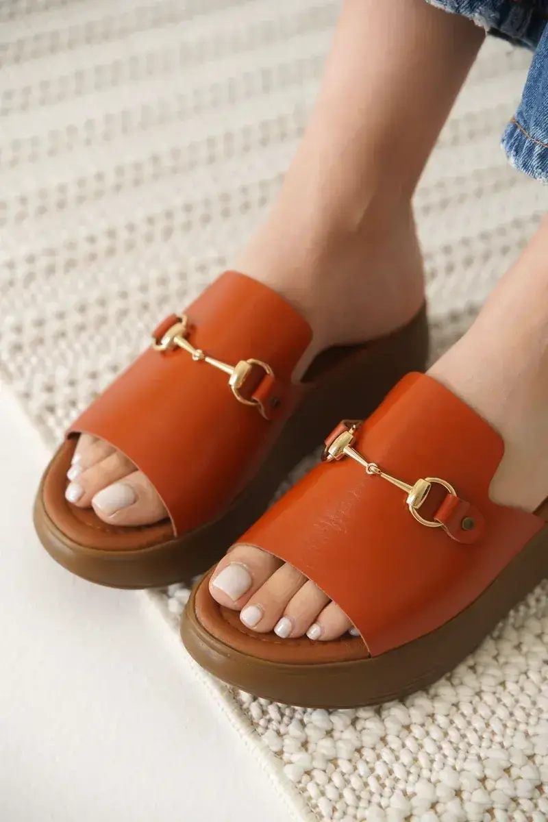 Kiremit Hakiki Deri Terlik BUCCA31MY62F