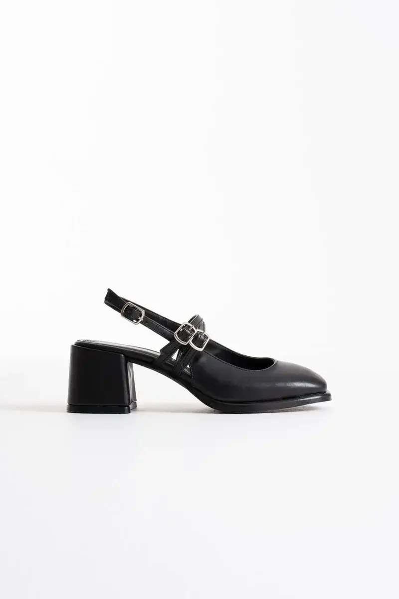 Siyah Cilt Kadın Topuklu Ayakkabı BUCCA02MS03C