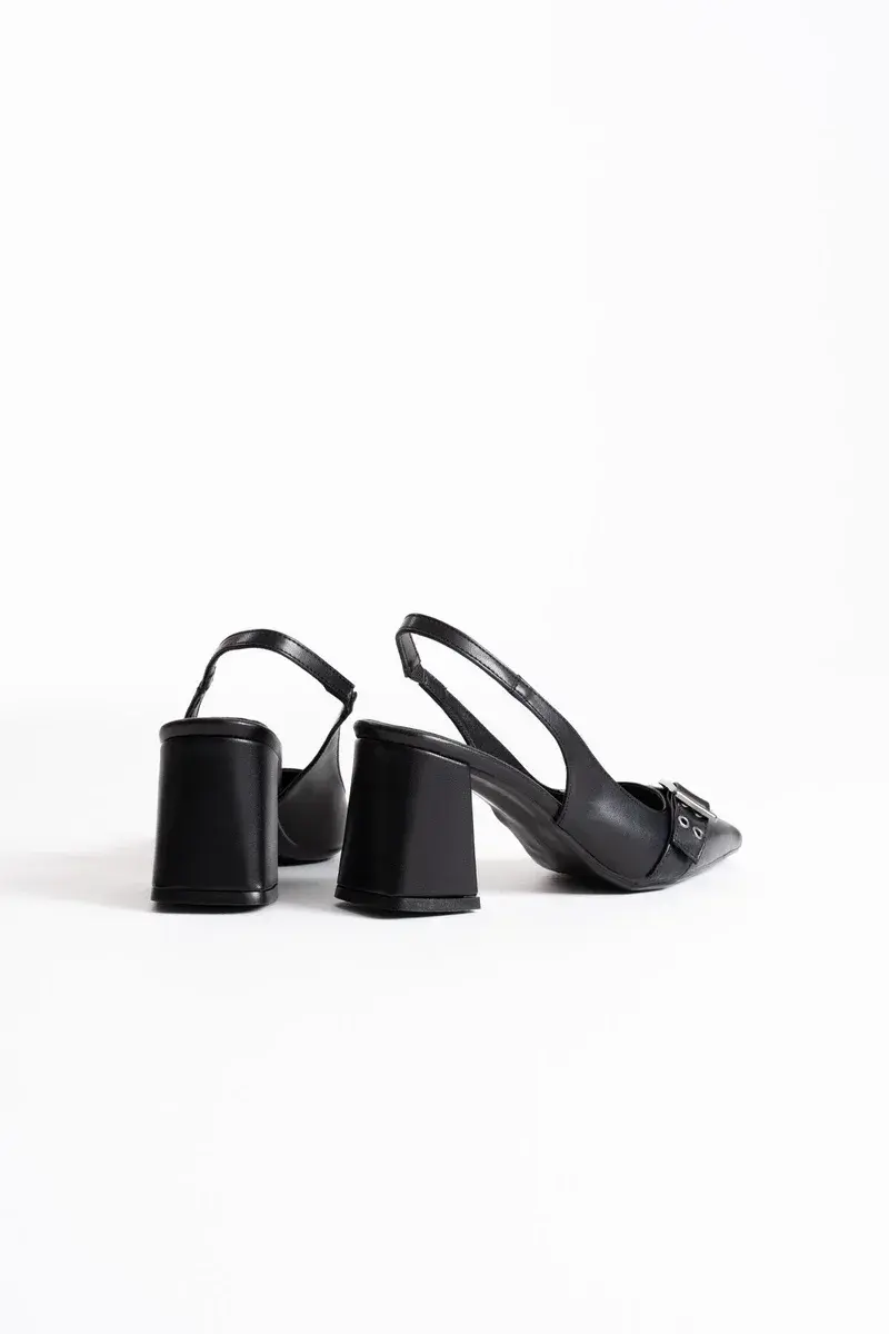 Siyah Cilt Kadın Topuklu Ayakkabı BUCCA08MS07D