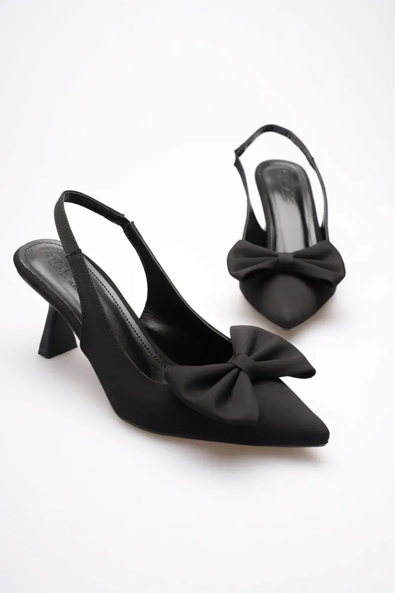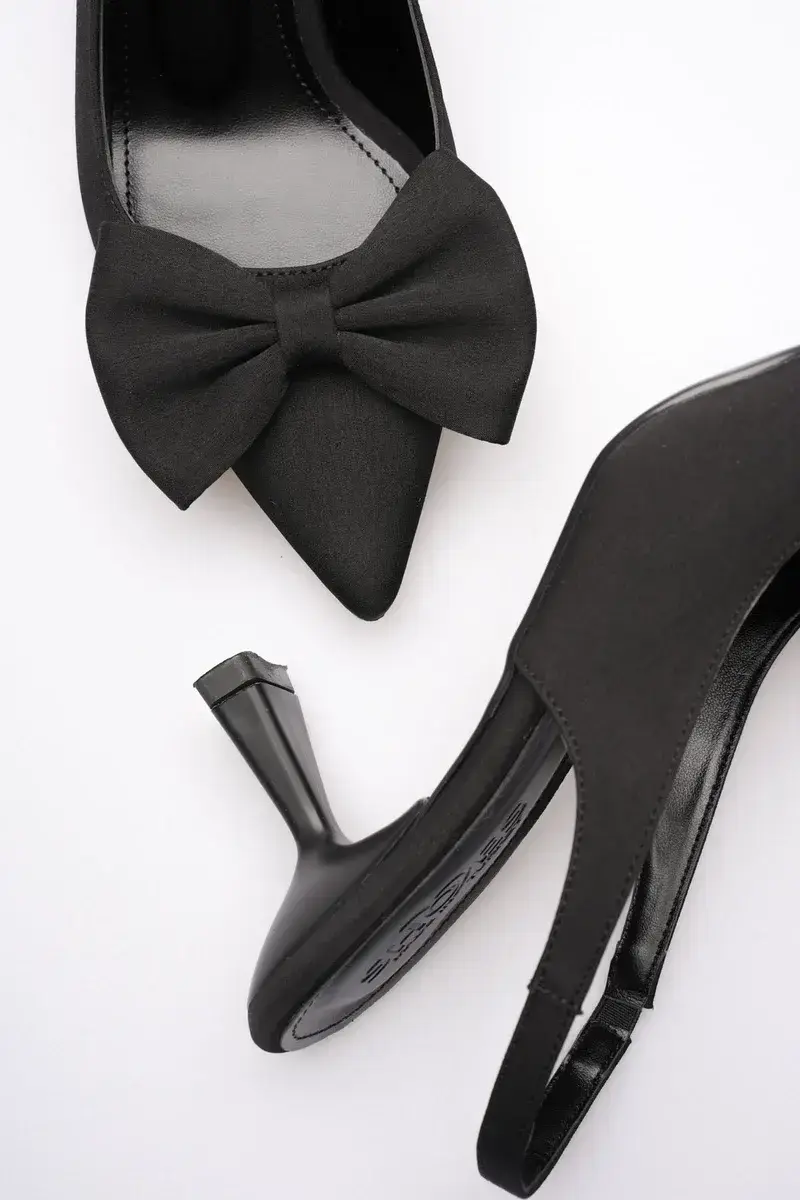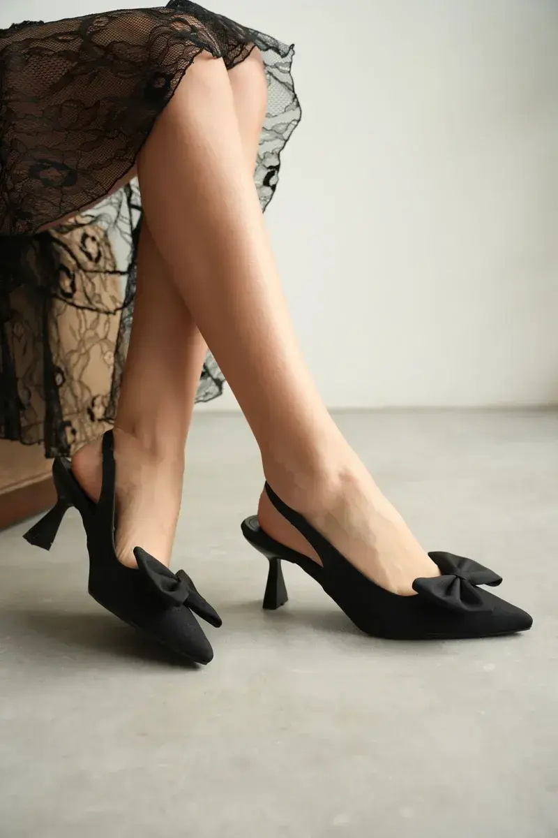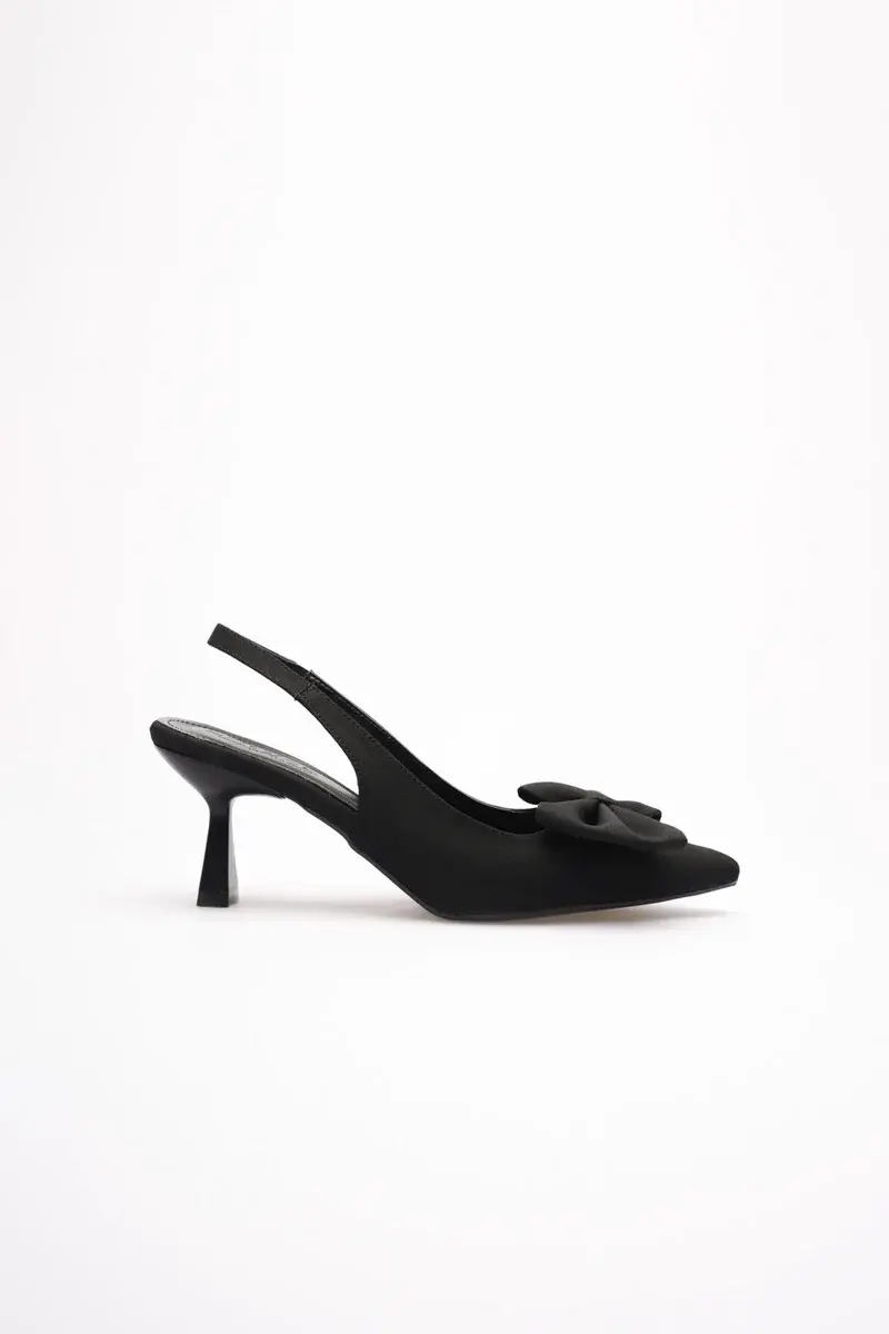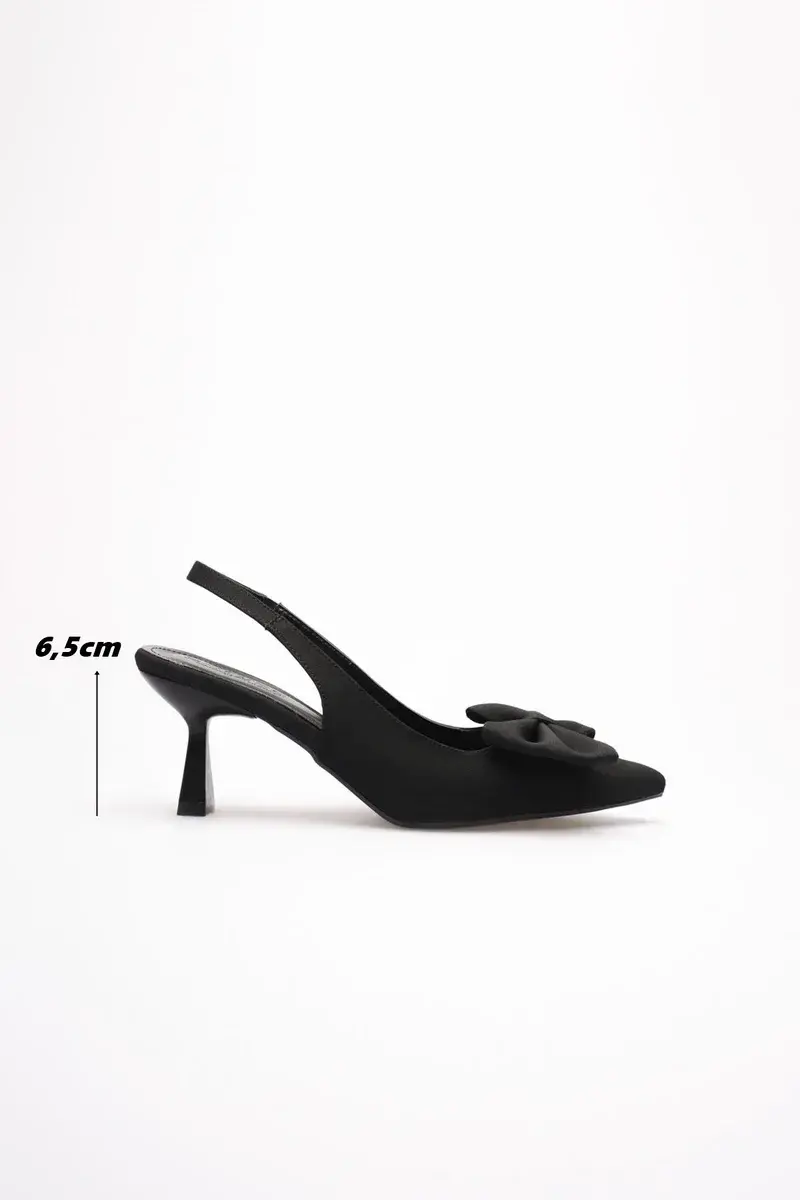 Siyah Fiyonklu Kitten Topuklu Slingback Kadın Ayakkabı BUCCA08MS24A
