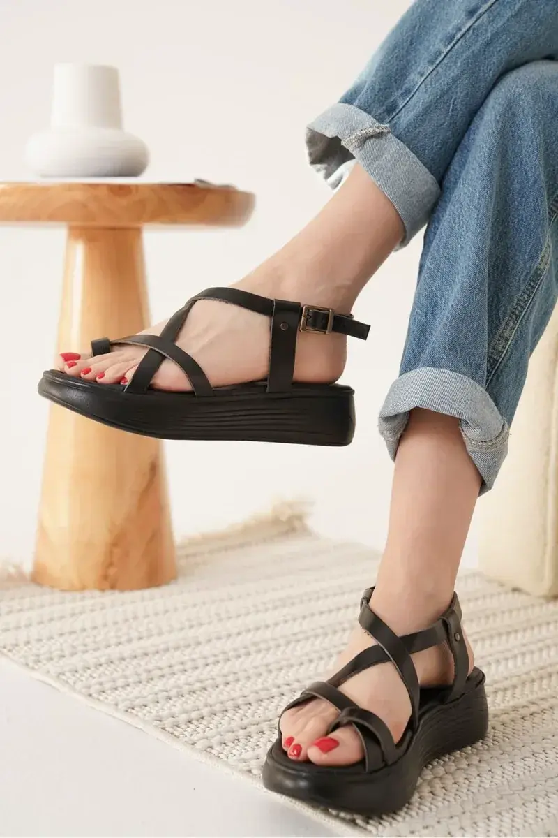Siyah Hakiki Deri Sandalet BUCCA31MY59A t_TR31MY59A