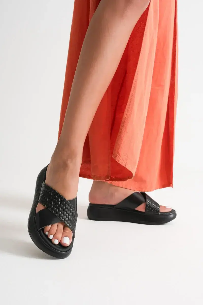 Siyah Hakiki Deri Terlik BUCCA31MY53N