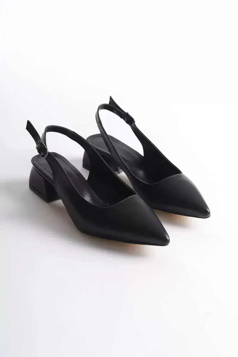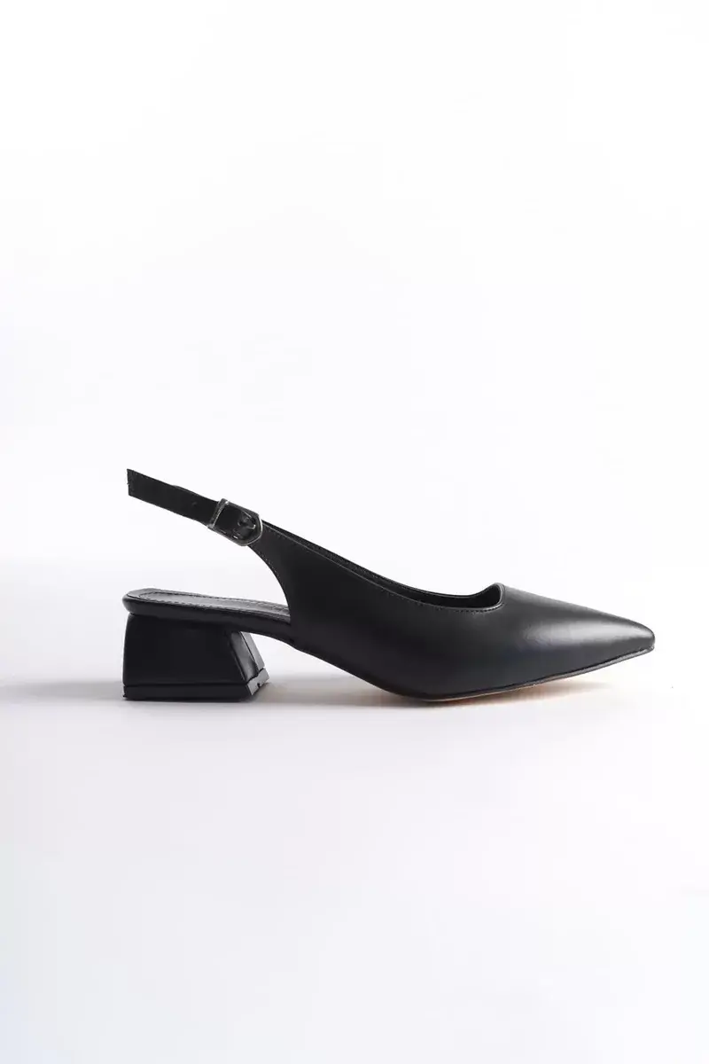 Sivri burun formu ile ayağa zarif ve ince bir siluet kazandırırken, açık arka tasarımı ve bilek bant detayı hafiflik ve konfor sağlar. Kısa topuk yapısı ise gün boyu rahat kullanım sunarken şıklığınızdan ödün vermez.