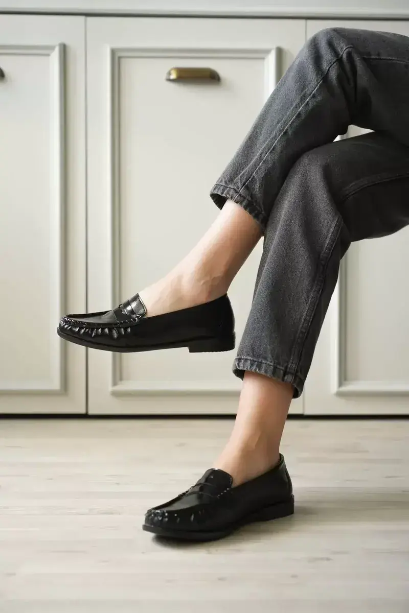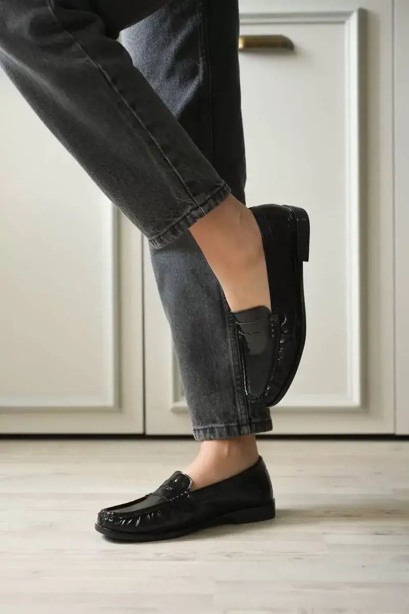 Siyah Rugan Penny Loafer Ayakkabı