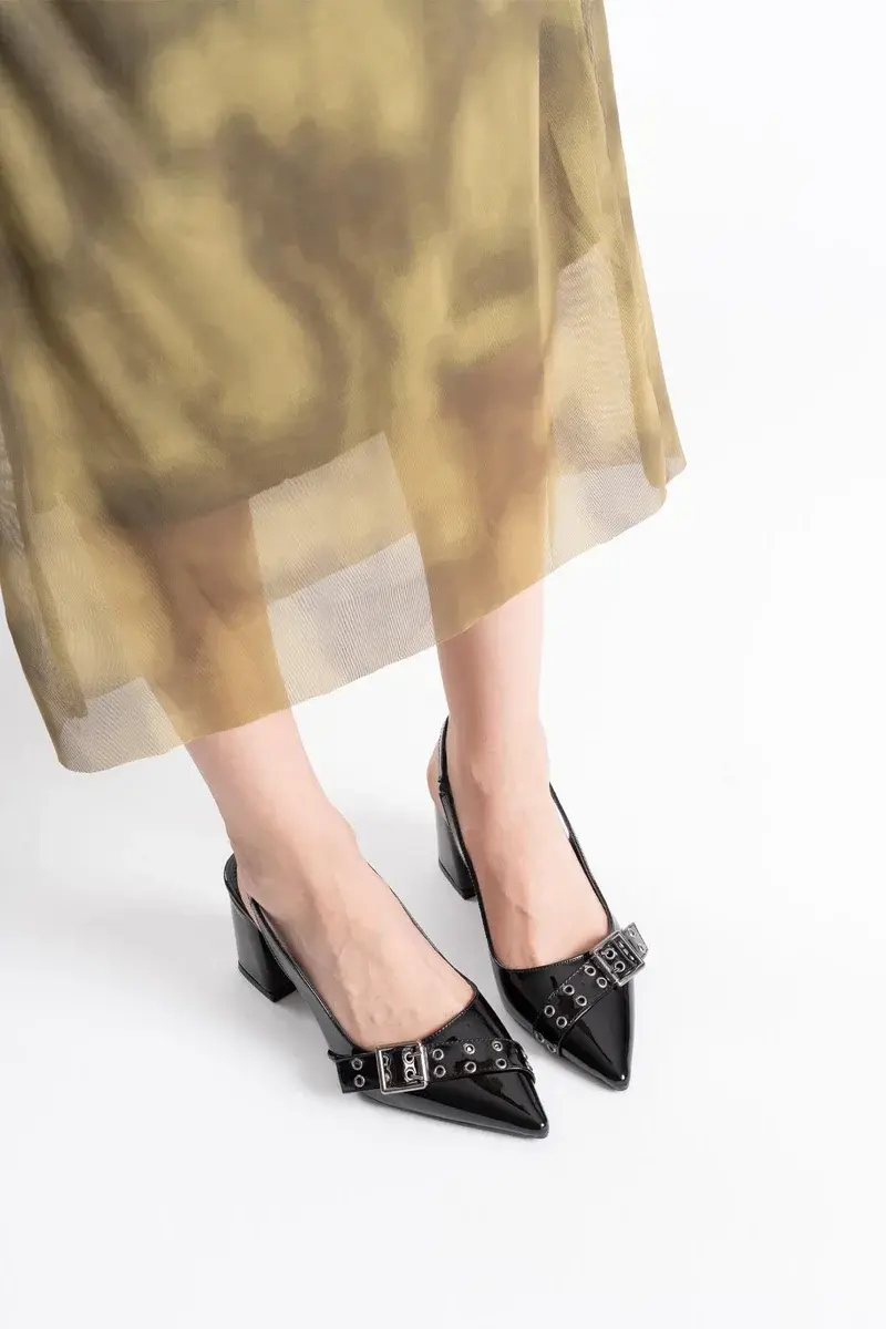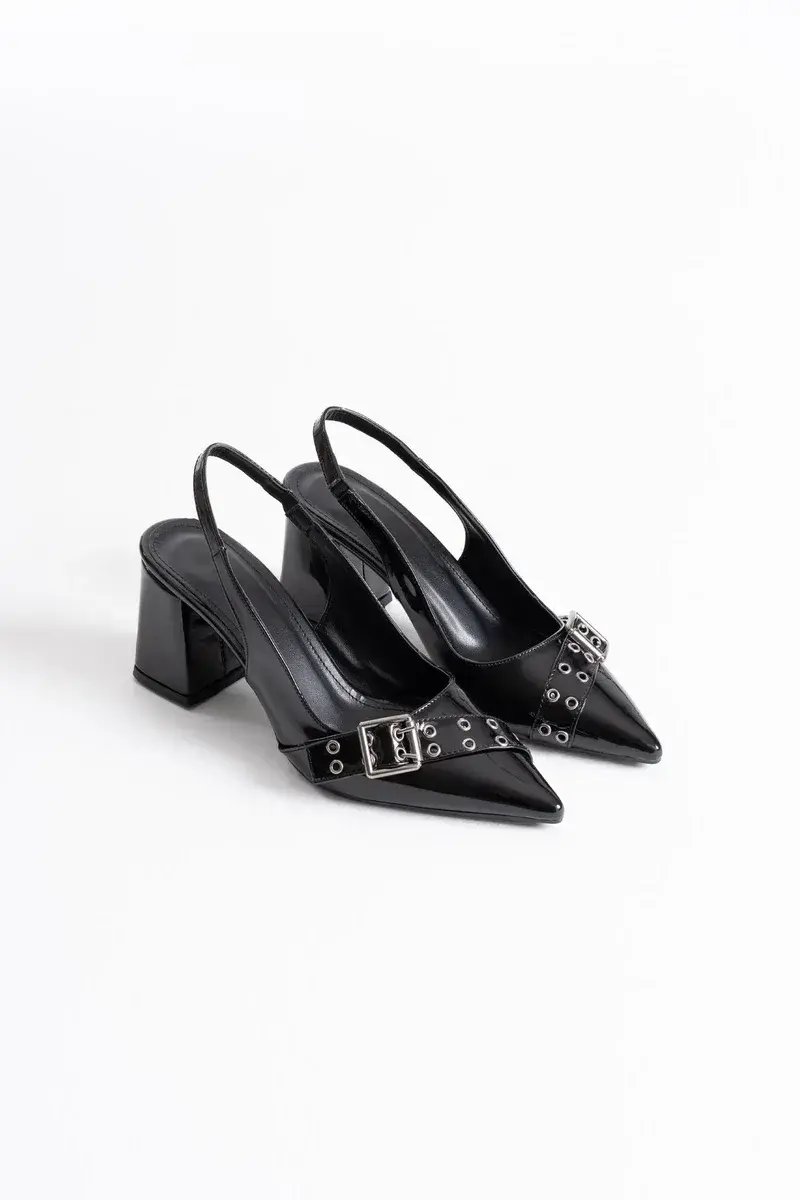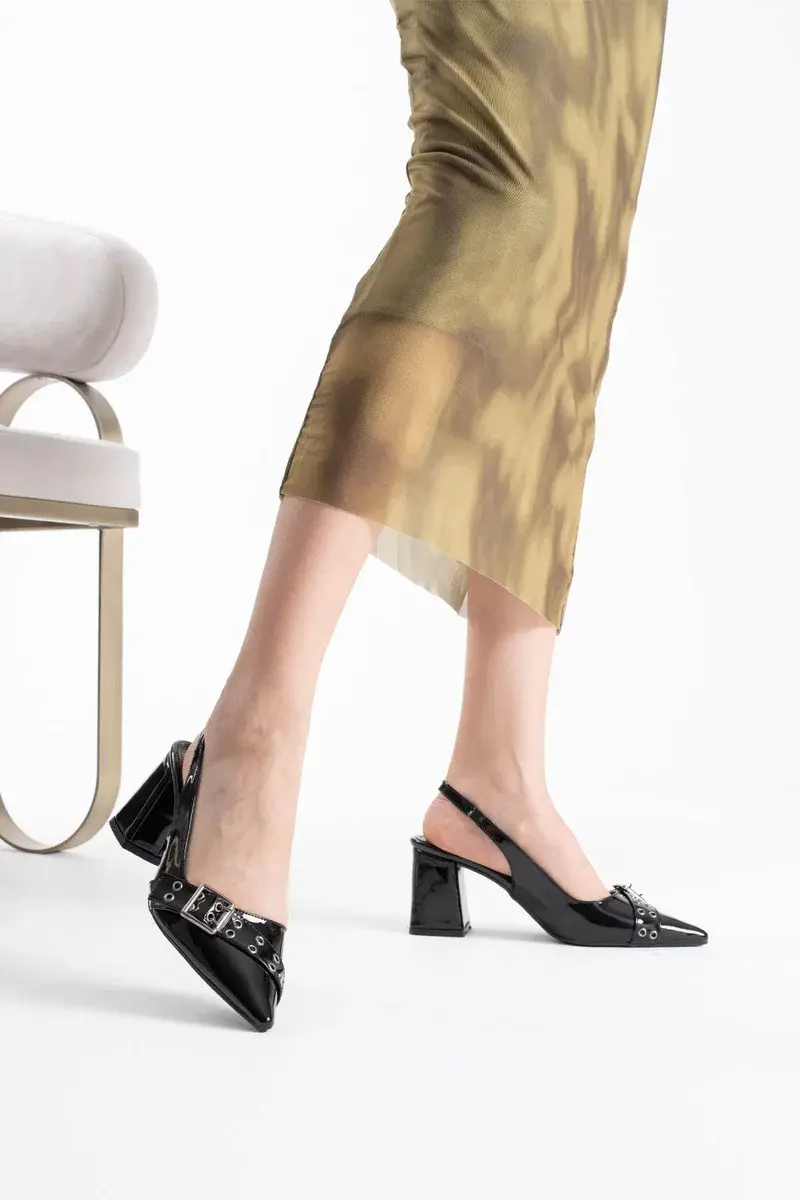 Siyah Rugan Kadın Topuklu Ayakkabı BUCCA08MS07A