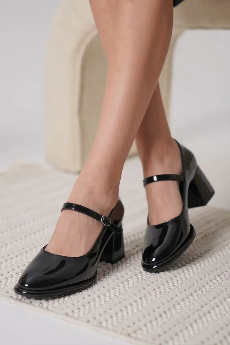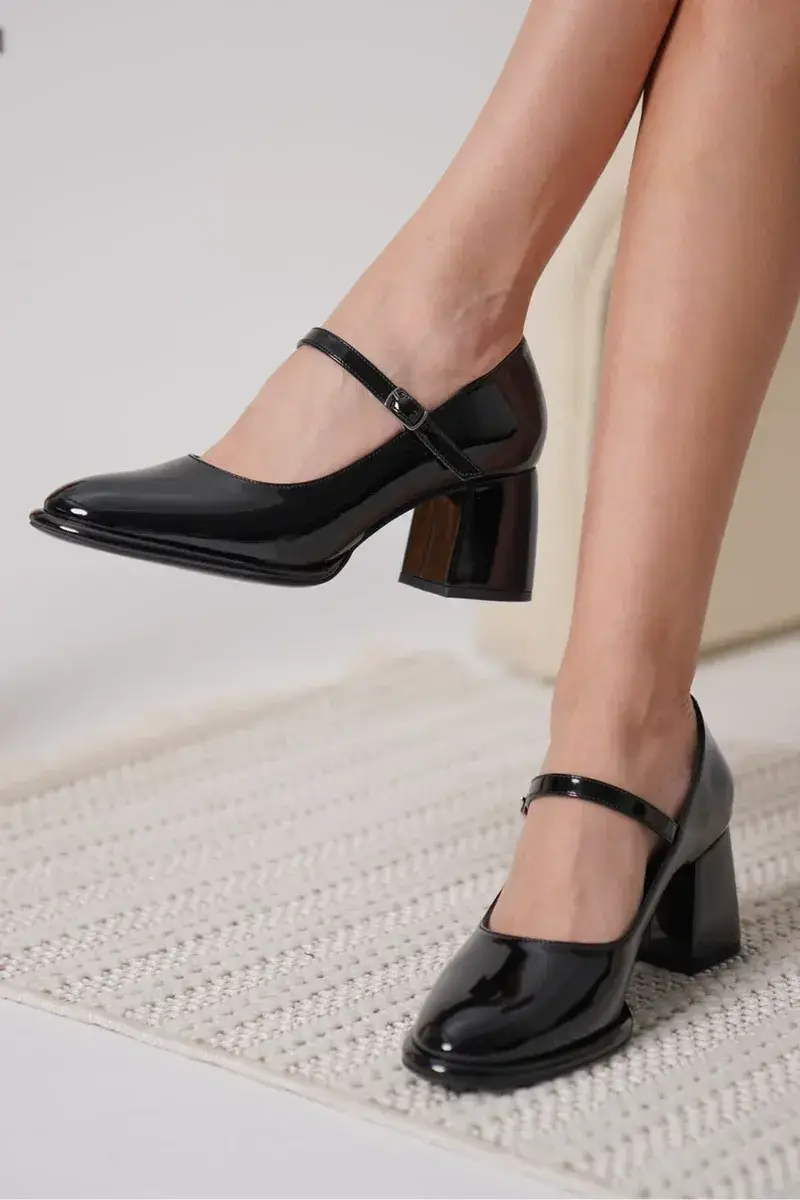 Siyah Rugan Kadın Topuklu Ayakkabı BUCCA18MS07A