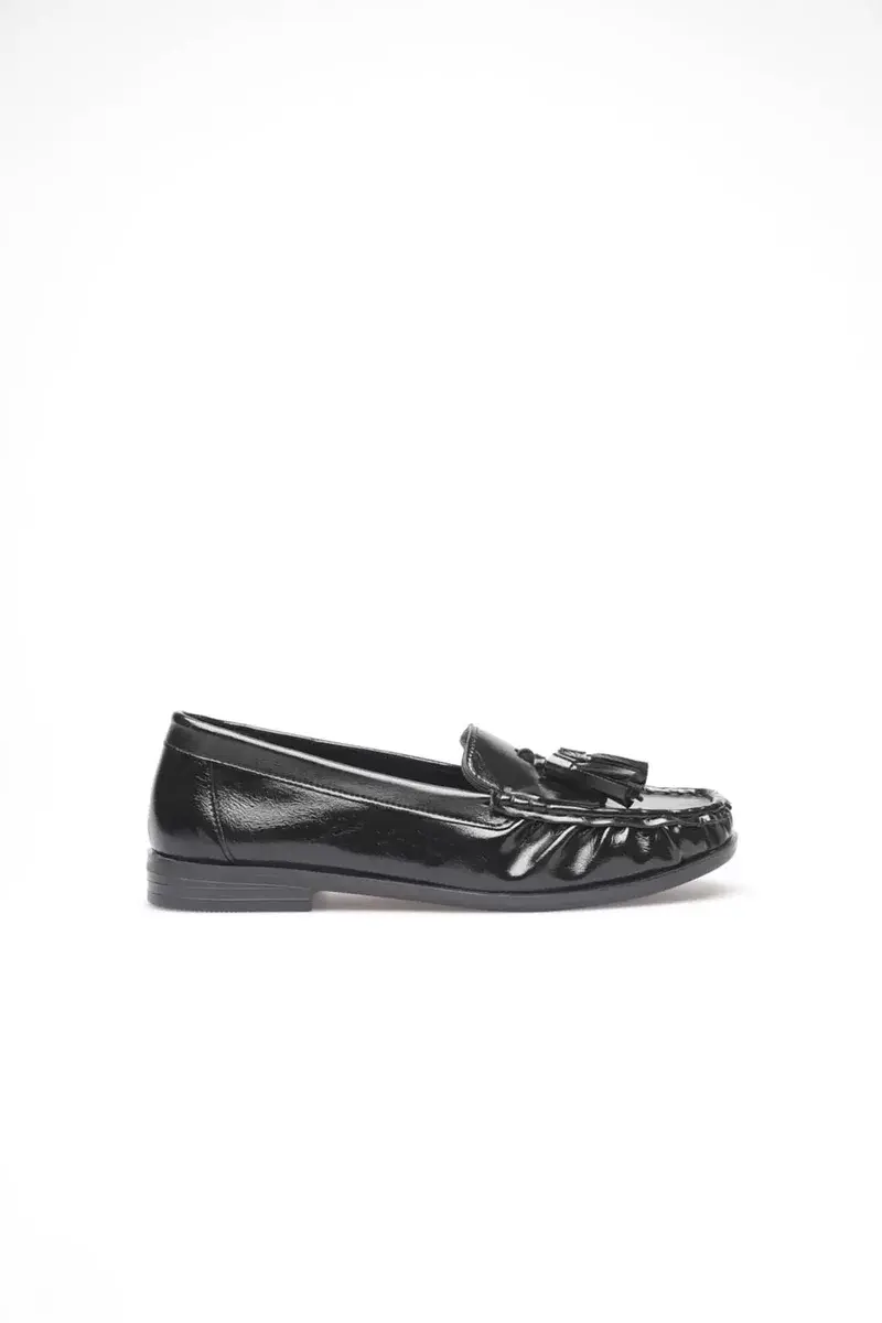 BUCCA siyah rugan loafer, zamansız tasarımı ve dikkat çekici parlak yüzeyi ile stiline modern bir dokunuş katar. Püskül detayı ile klasik loafer formunu daha karakterli ve şık hale getirir.