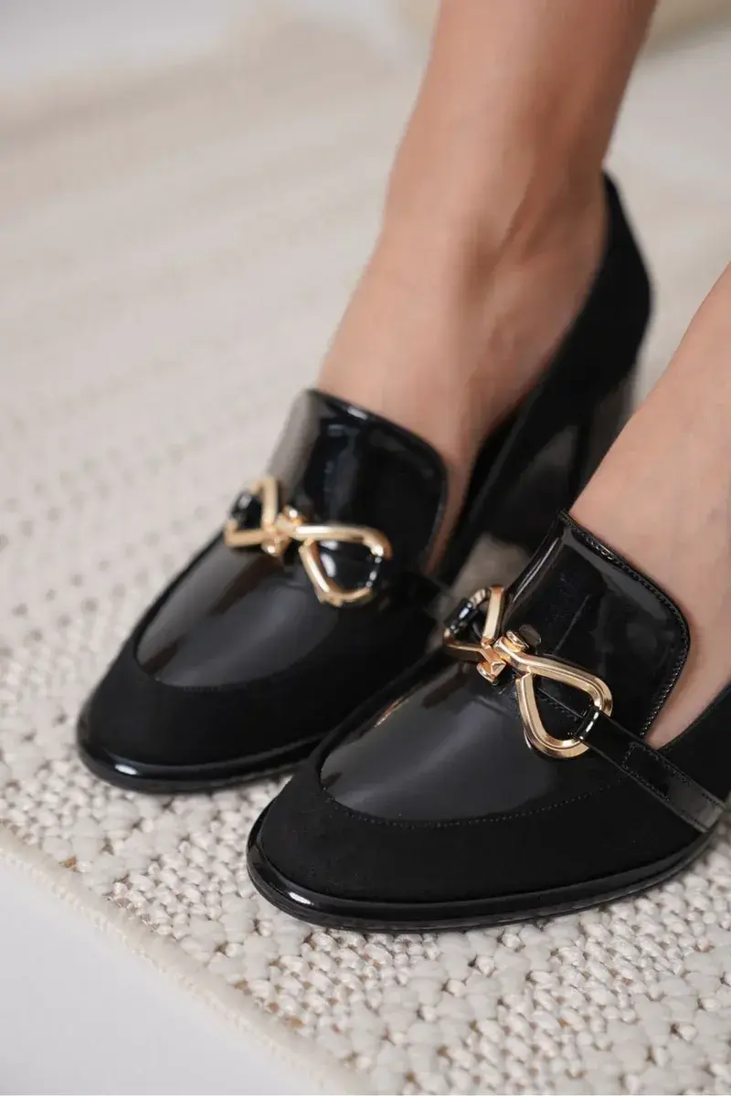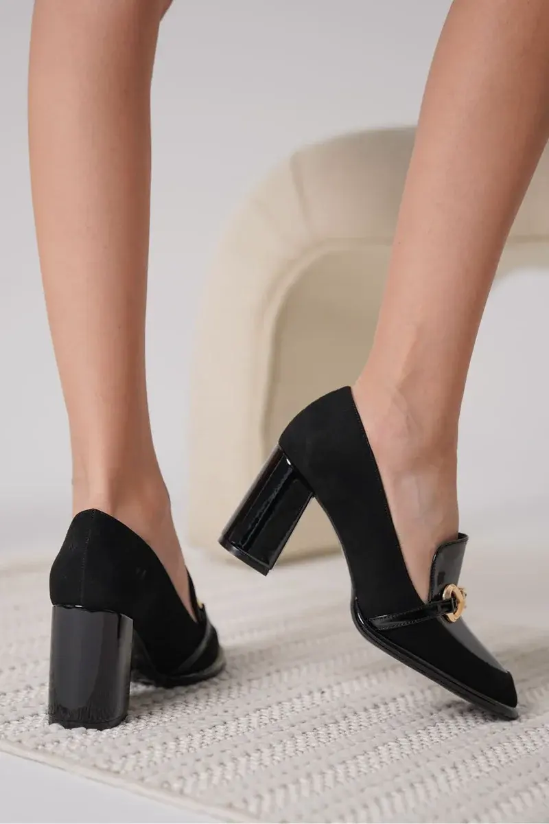 Siyah Rugan Süet Detaylı Kadın Topuklu Ayakkabı BUCCA18MS10C