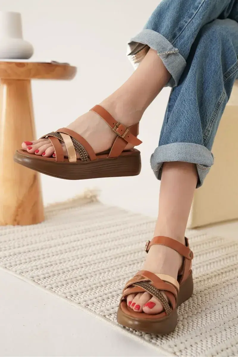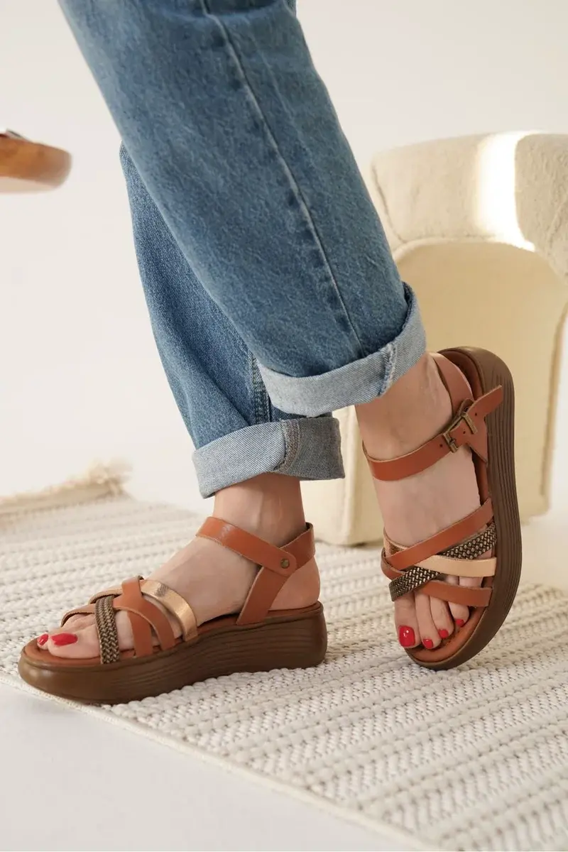Taba Altın Detaylı Hakiki Deri Sandalet BUCCA31MY55H