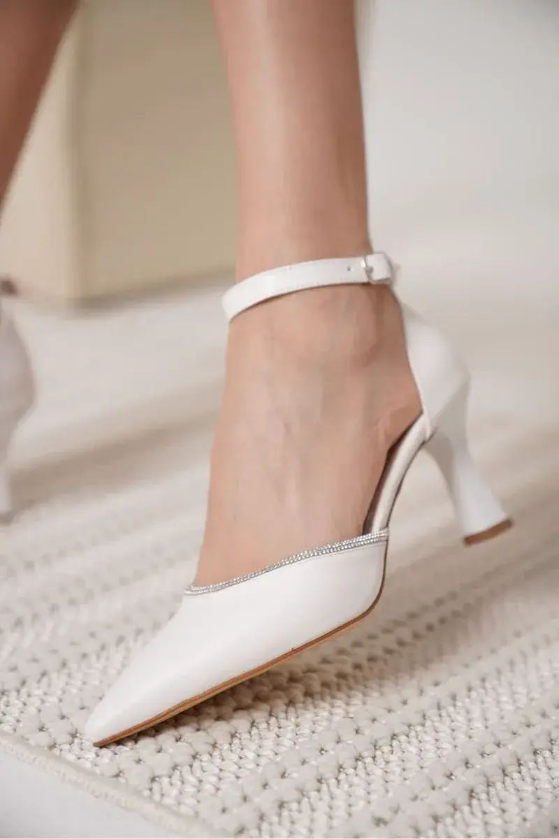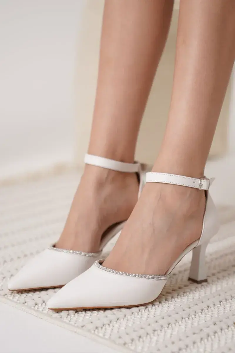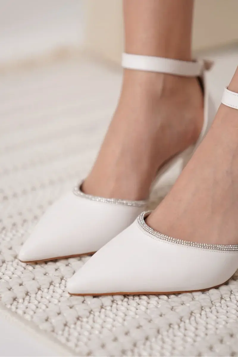 Taşlı Kadın Beyaz Topuklu Ayakkabı BUCCA12MS02B