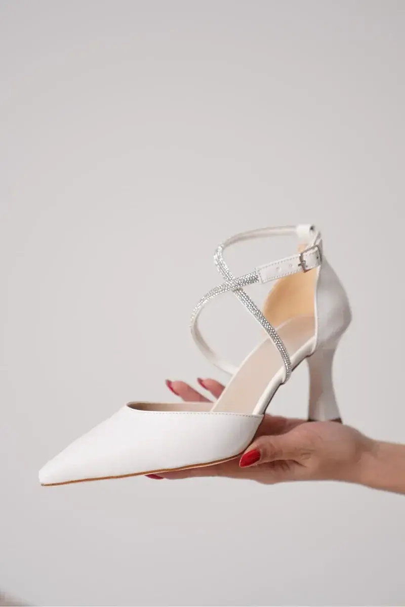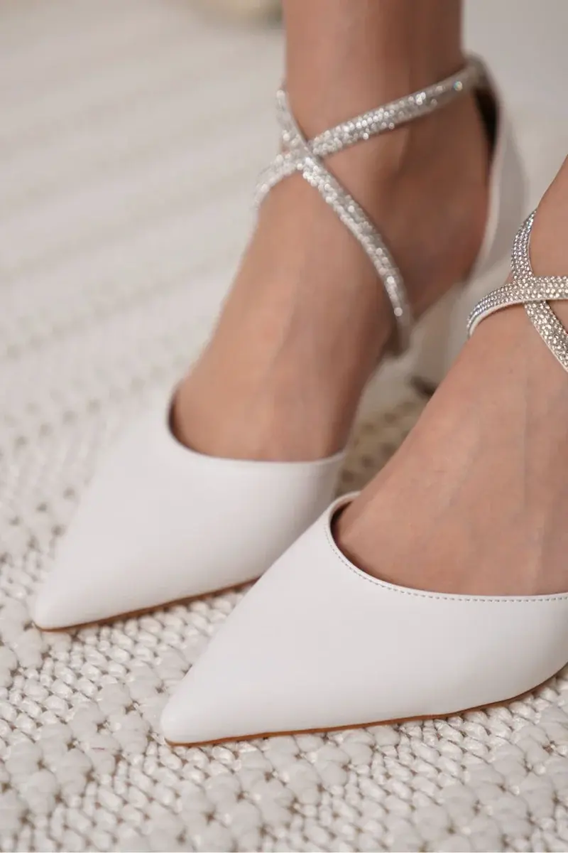 Taşlı Kadın Beyaz Topuklu Ayakkabı BUCCA12MS03B